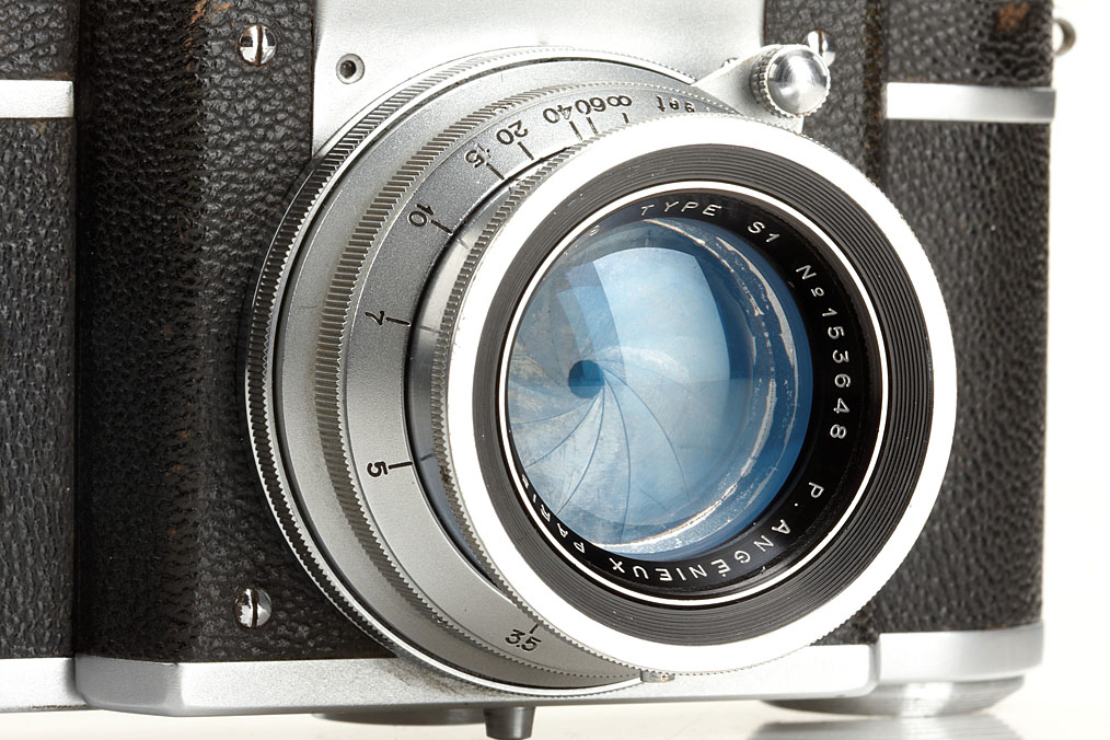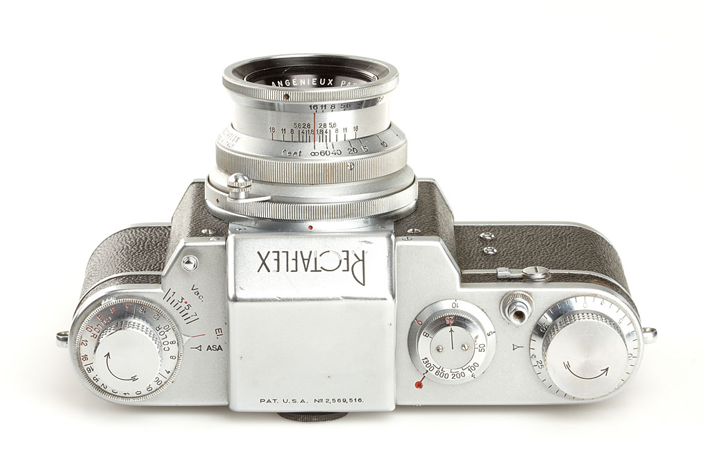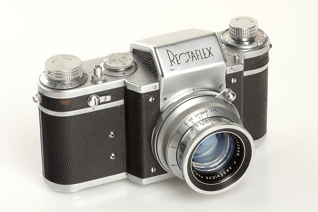 Rectaflex Standard series 25000 with matching warranty card, Angenieux 1.8/50mm Type S1 no.153648,(cap), everready case, Angenieux 3.5/135mm Type Y2 no.324344 (cap, keeper)