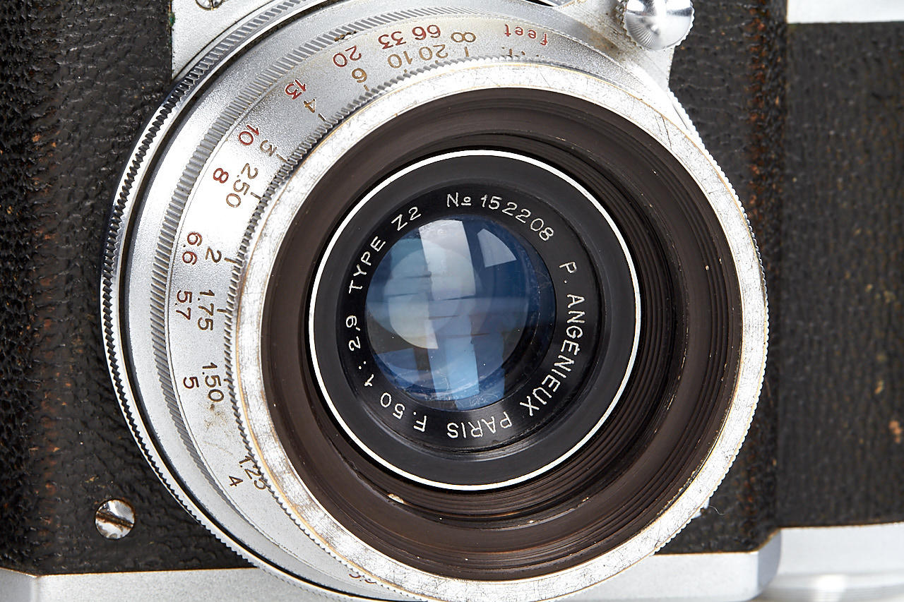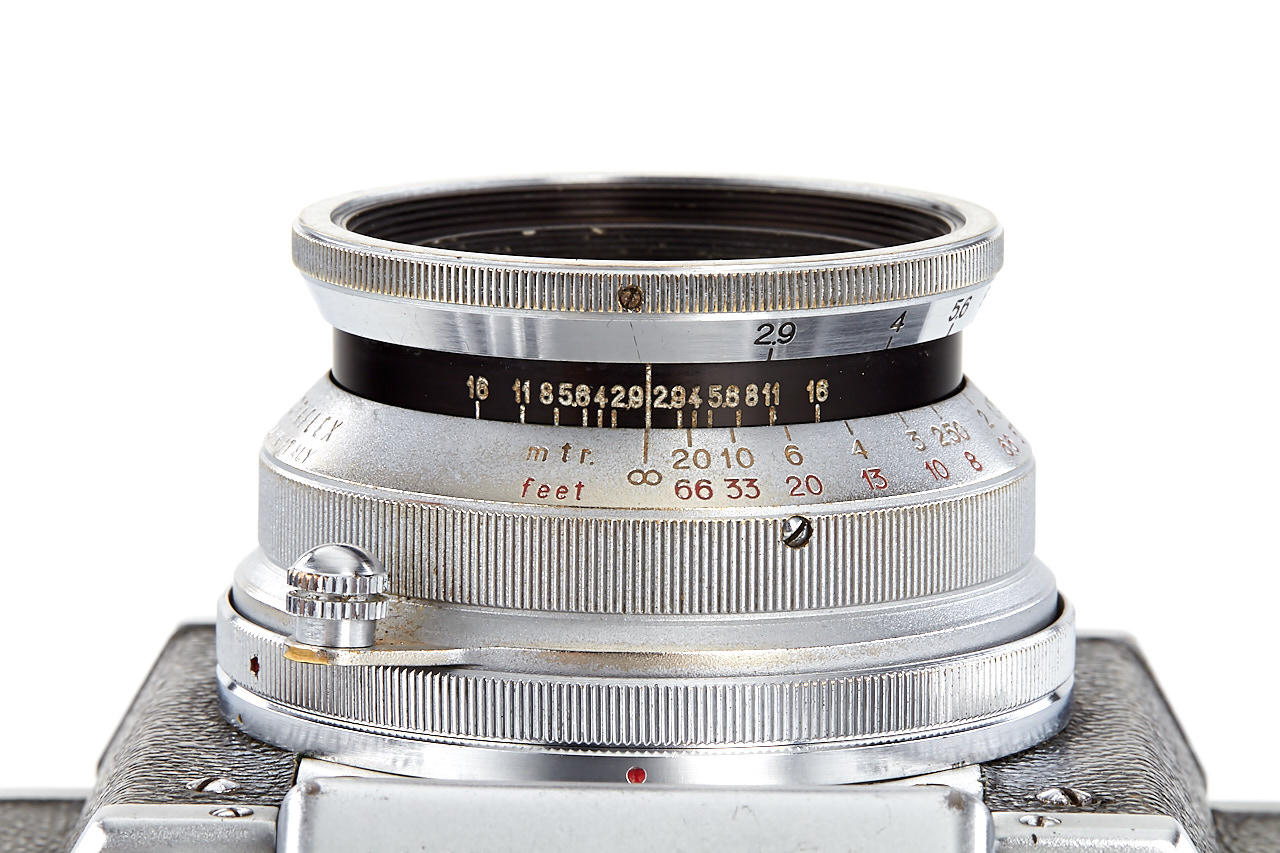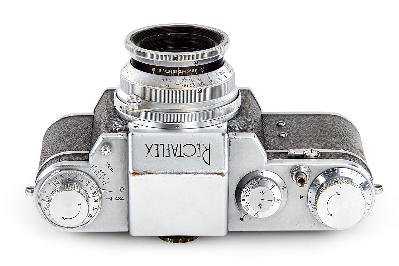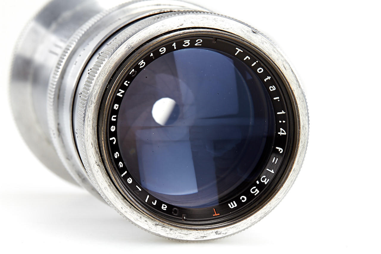 body in fine condition and in working order, with Angenieux Type Z2 2.9/50mm no.152208 (cond. B, slight cleaning marks), very rare Triotar T 4/13.5cm no.3319132 (engraved on the barrel 'Rectaflex', with original front cap engraved with Zeiss and Rectaflex logo, good condition), four filters in worn boxes, ASOP hood, ASRAP hood, leather case