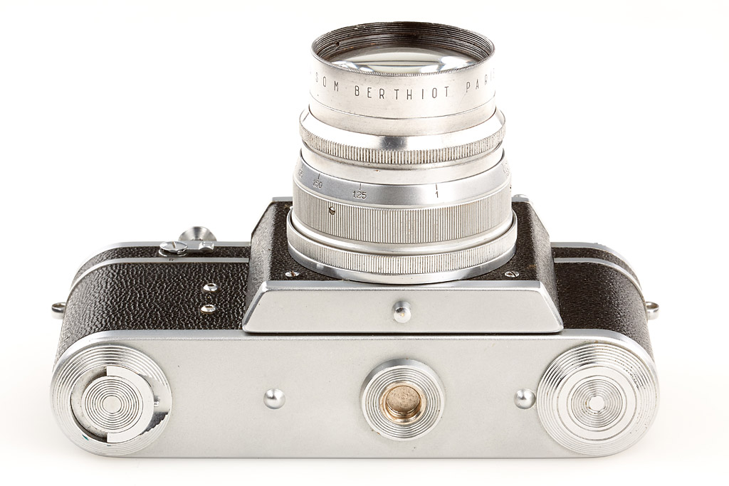 with warranty card with matching body number, very rare with Som Berthiot Flor 1.5/55mm no.452074 (some small scratches), blue/red maker's box