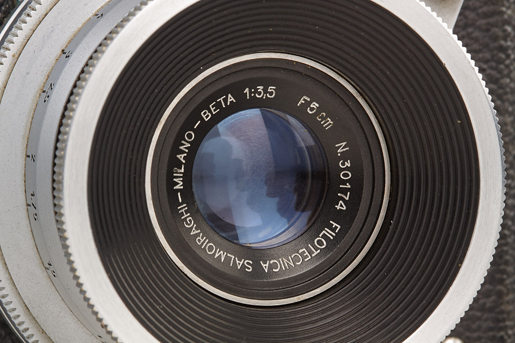 rare camera in very fine condition with Filotecnica Salmoiraghi 3.5/5cm no.30174 (cap), everready case