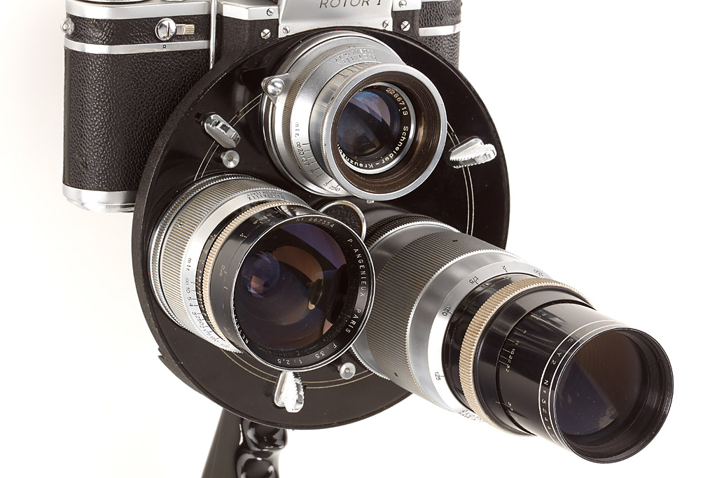 Rotor outfit with 3 matching lenses (Angenieux Type R1 2.5/35mm no.267354, Angenieux Type Y2 3.5/135mm no.324455, Schneider Xenon 2/50mm no.2286713 (cap)