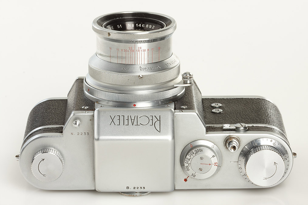 Italian SLR in good condition with matching Angenieux Type S1 1.8/50mm (cleaning marks), cap, hood ASVOP, everready case