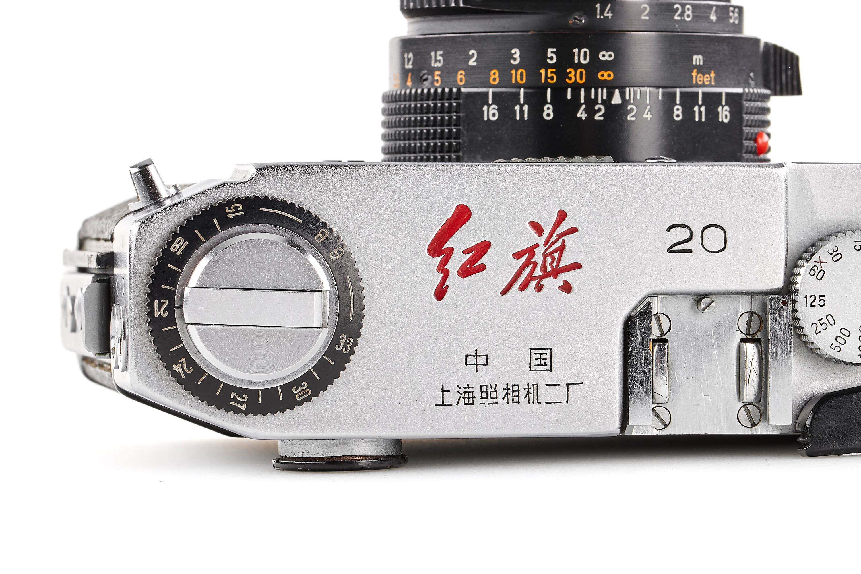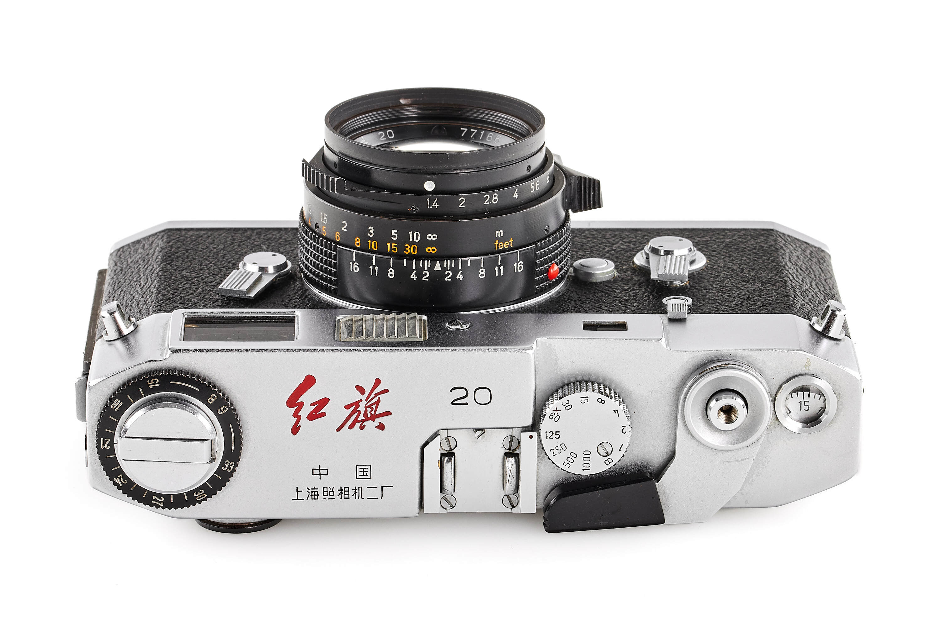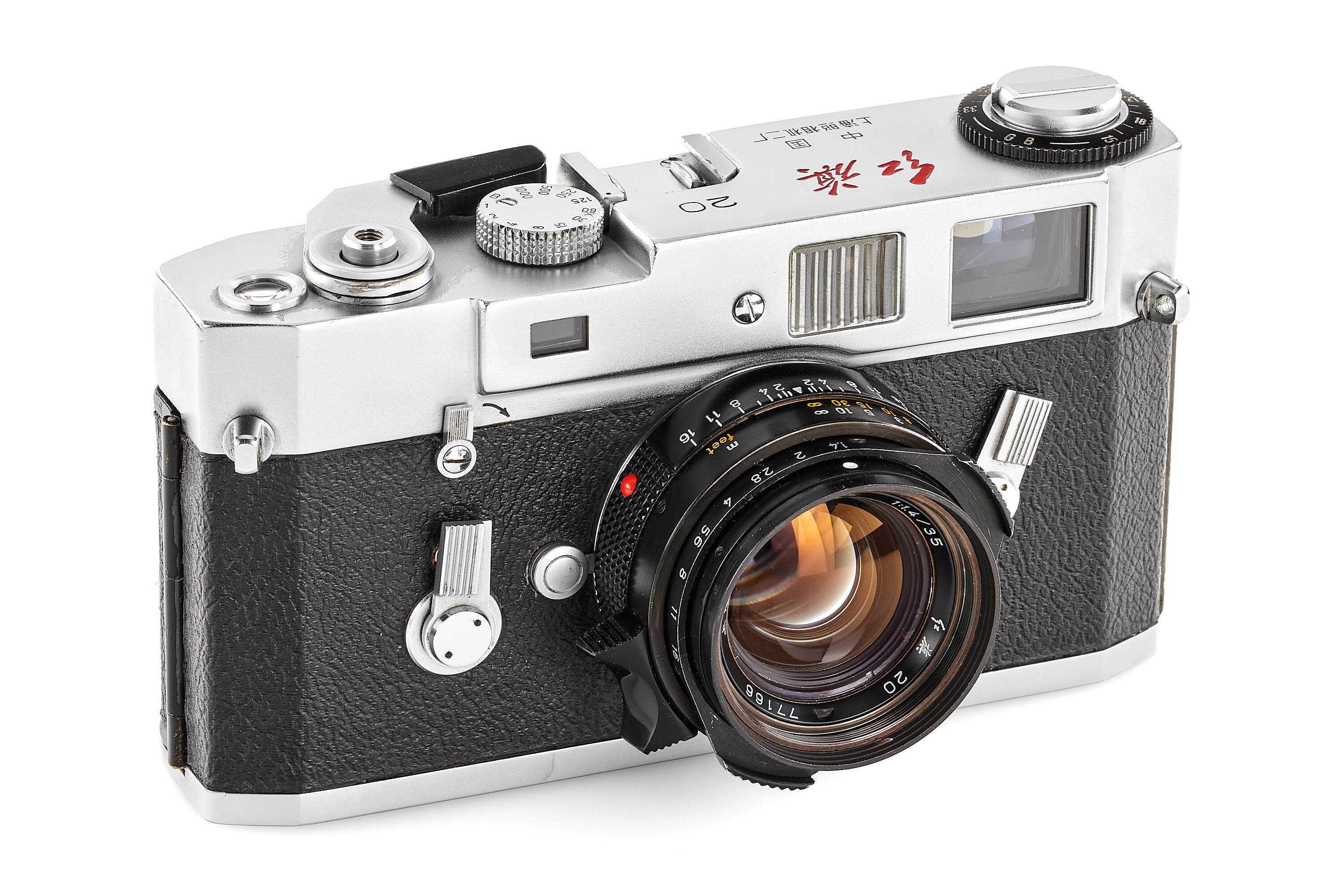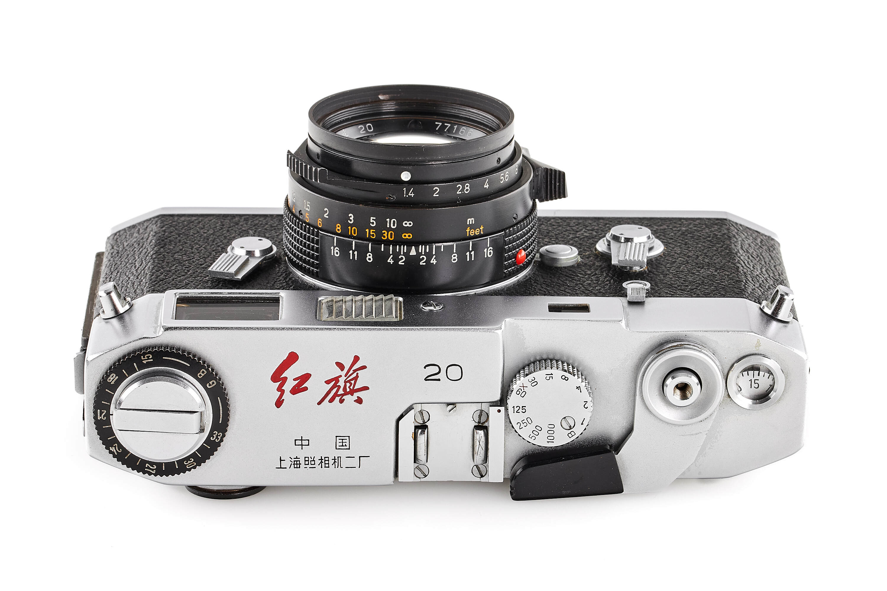An extremely rare Hong Qi 20 (“Red Flag 20”), China’s ambitious copy of the Leica M4, produced in the 1970s by the Shanghai No. 2 Camera Factory. Conceived as a prestige project to demonstrate the technical and industrial capabilities of the People’s Republic of China, the Hong Qi 20 was manufactured almost entirely by hand in extremely limited numbers – most sources suggest no more than 200 examples. These cameras were never made available for commercial sale, but were reserved for government institutions, the official press, and presentation purposes. The engraved red flag emblem on the body was based on the calligraphy of Chairman Mao Zedong, underlining its symbolic importance.