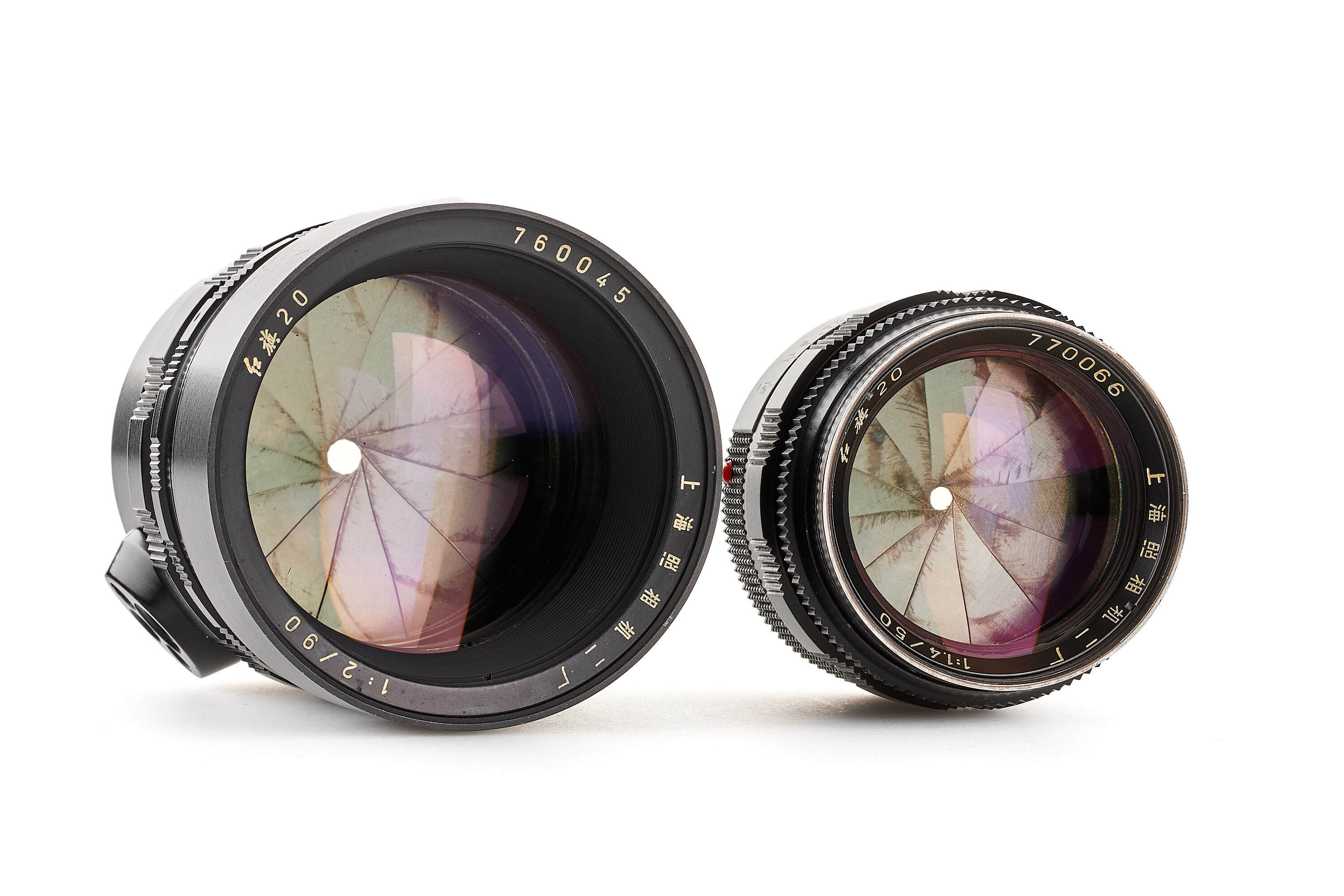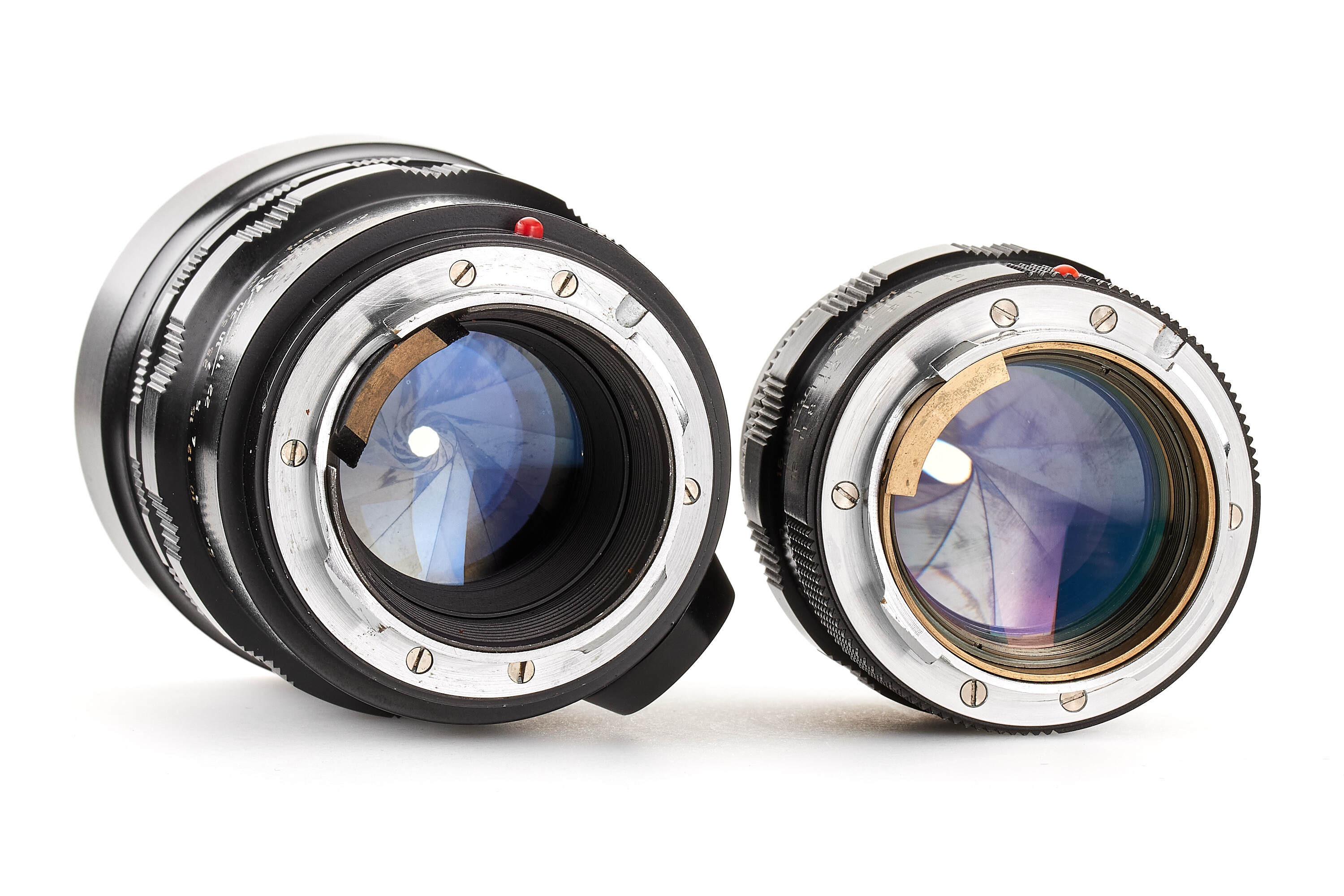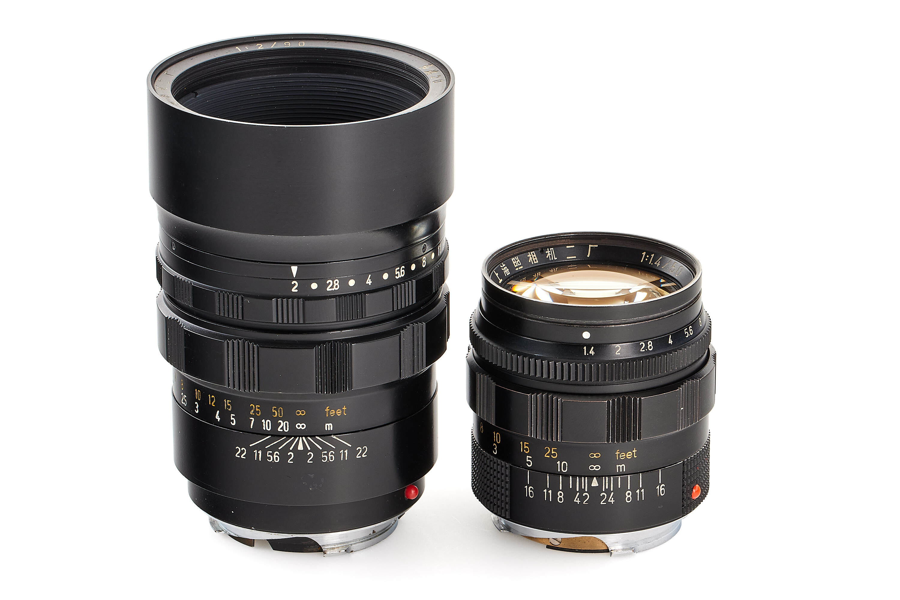 The example offered here is one of the most complete and best-preserved outfits known to exist. It includes the camera body number 770191 with a 50mm f/1.4 lens no. 77066, an exact copy of the Leitz black paint Summilux, complete with hood and front cap; 35mm f/1.4 lens no. 77166, closely modelled after the Summilux, with hood and original lens keeper; and 90mm f/2 lens no. 760045, a faithful copy of the Summicron, with front cap and lens keeper. All components are in excellent condition and in perfect working order, with the lenses displaying exceptionally clean glass.