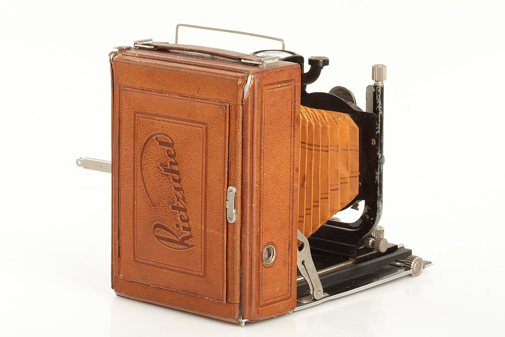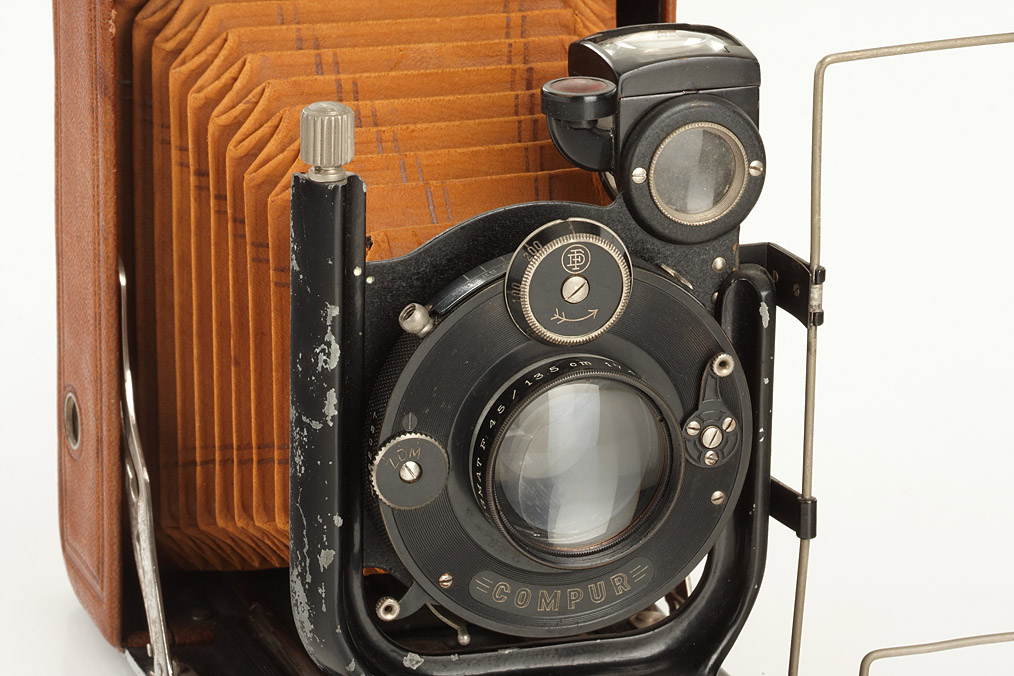 quite rare luxus version with brown leather covering and bellows, original focusing screen adapter, Solinar 4.5/13.5cm no.174770 in Compur shutter