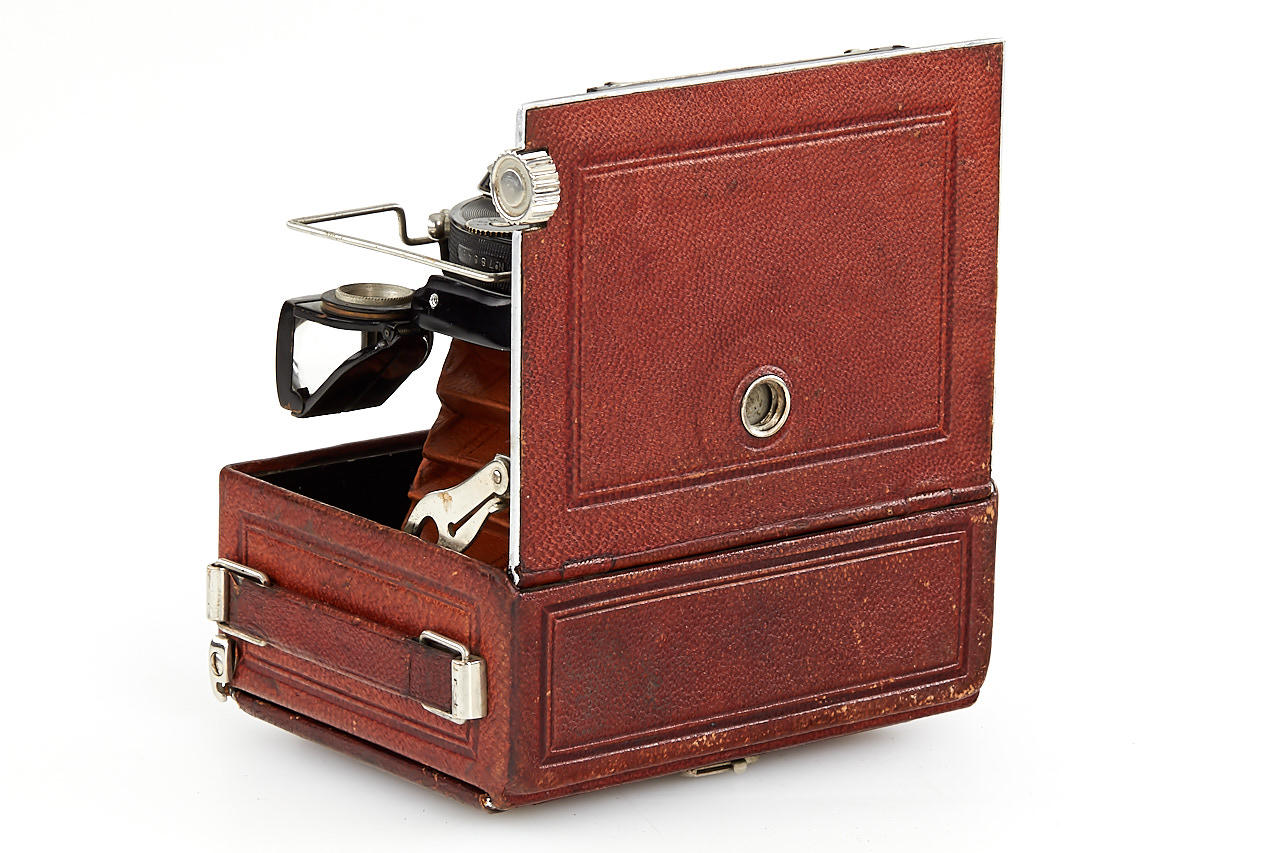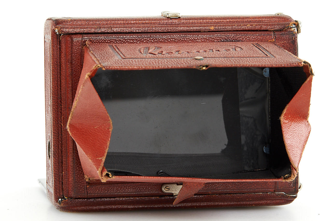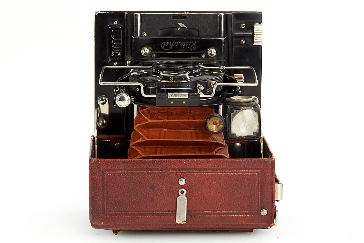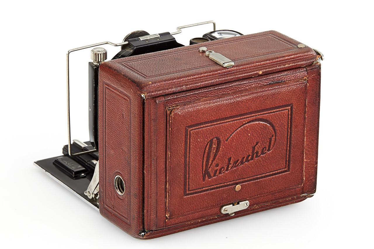 very rare tropical Rietzschel for 6.5x9cm exposures, brown leather covering, brown bellows, with Rietzschel Doppel Anastigmat Linear 4.5/120mm no.157567, original ground glass back, in good condition