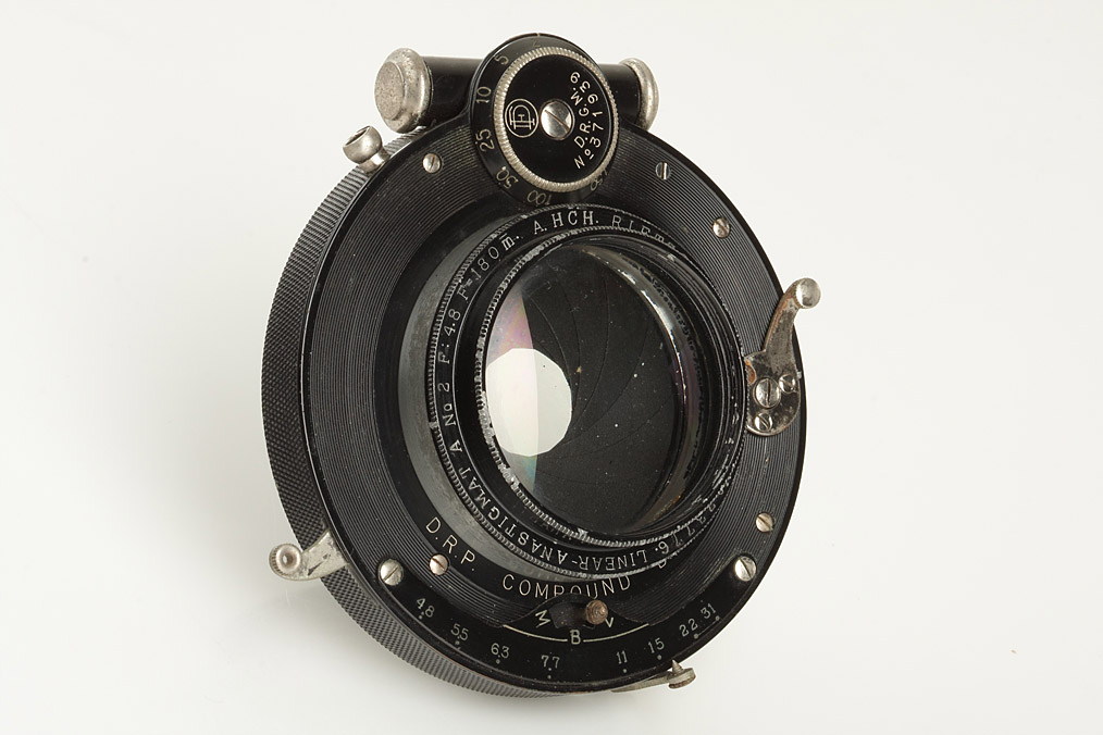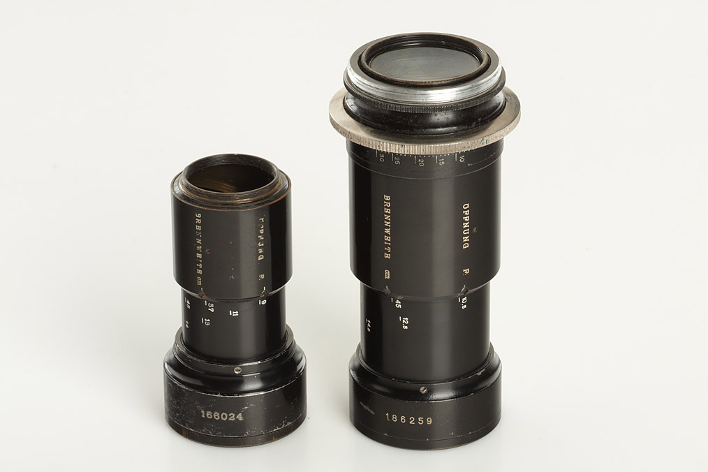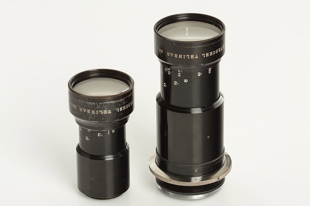 3 rare lenses by A. HCH. Rietzschel, München: (1) Linear-Anastigmat No.2 4.8/180mm no.73776 in Compound shutter (balsam fold), (2) Telinear No.1 no.166024 (caps, keeper), (3) Telinear No.2 no.186259 (cap, keeper), also included: (4) Plaubel Tele-Piconar with instruction book (4)