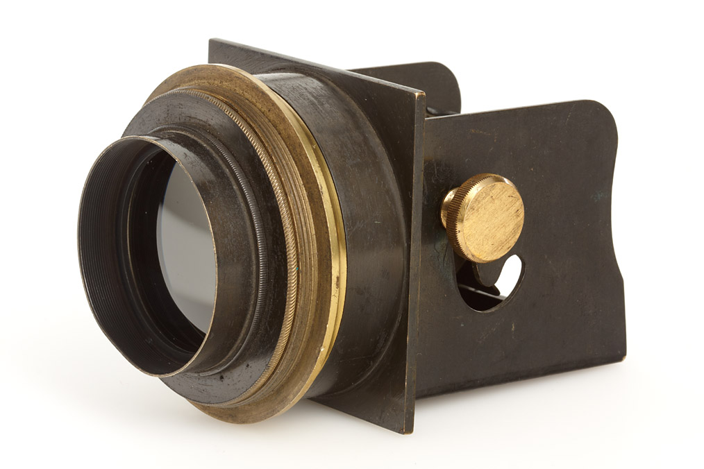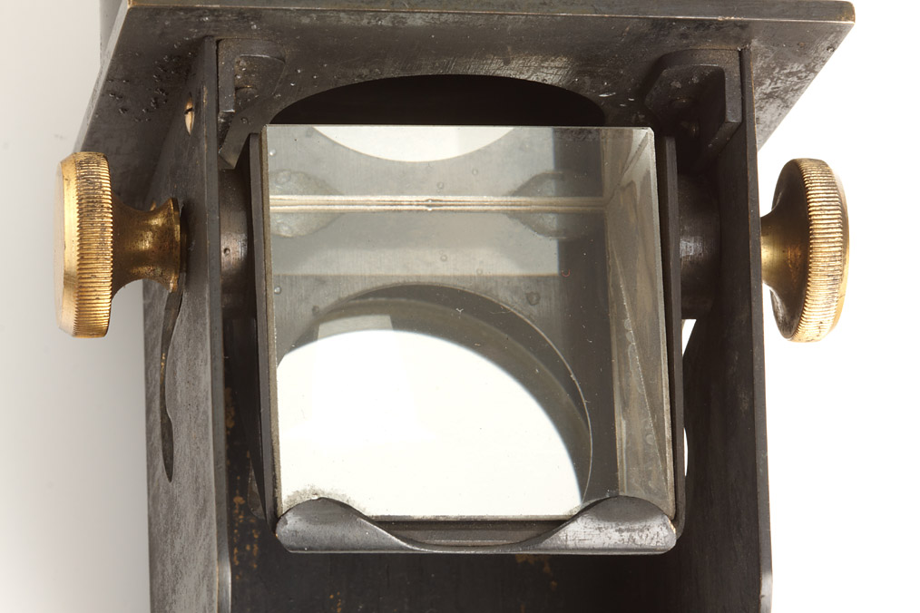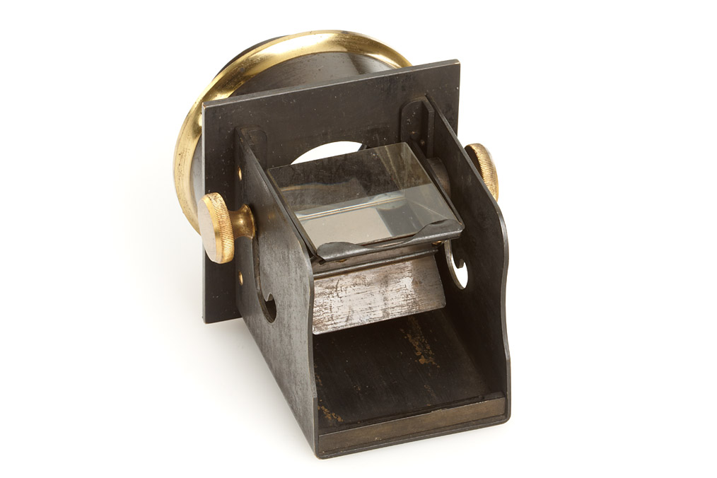 rare brass lens with adjustable prism to mount in front of a magic lantern lens