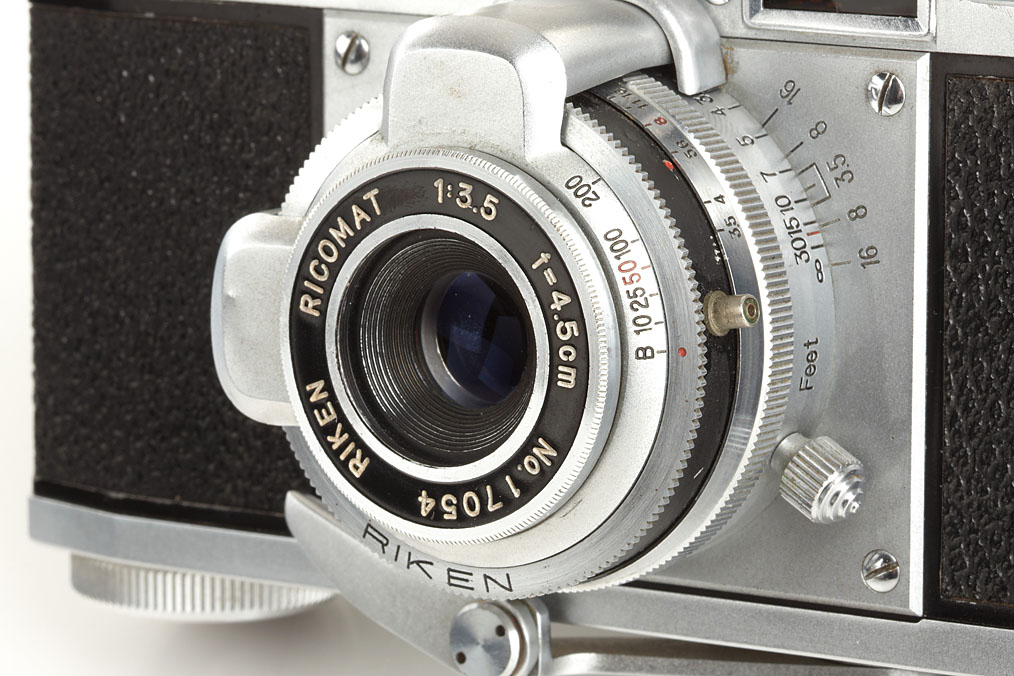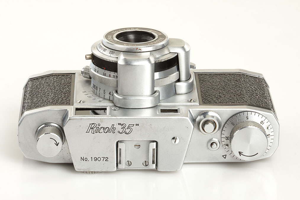 35mm camera with coupled rangefinder, rapid lever, Ricomat 3.5/4.5cm no.17054, in working order