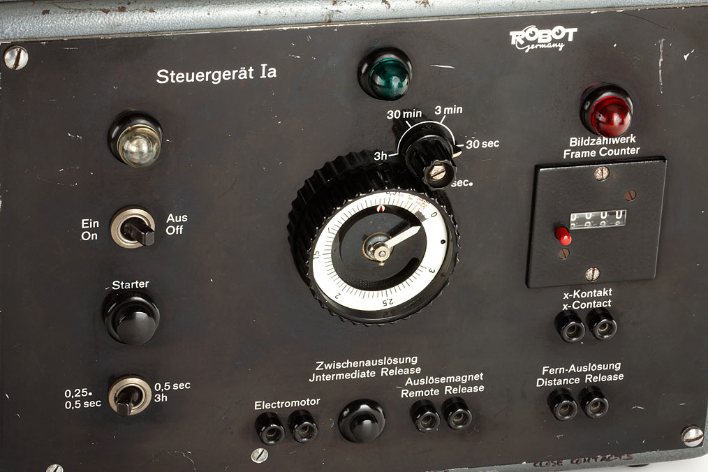 rare Steuergerät Ia (control unit), data inclusion plateau, mounting bracket 2, KULI (mounting system), electric motordrive SAVIP no.2540, two base plates, two shutter release mechanisms, AC-adapter (French), Xenar 2.8/38mm no.3585683 (bayonet mount, cap, case) (10)