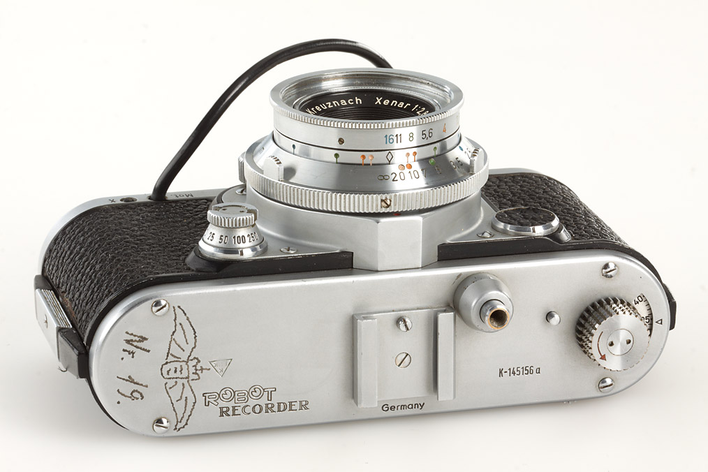 rare military camera in fully original condition ('no.19 + Danish Crown' engraved on top plate), Xenar 2.8/38mm no.3620515 (camera no.13 is illustrated in Hans Grahner 'Robot Das Sammlerbuch' p.59)