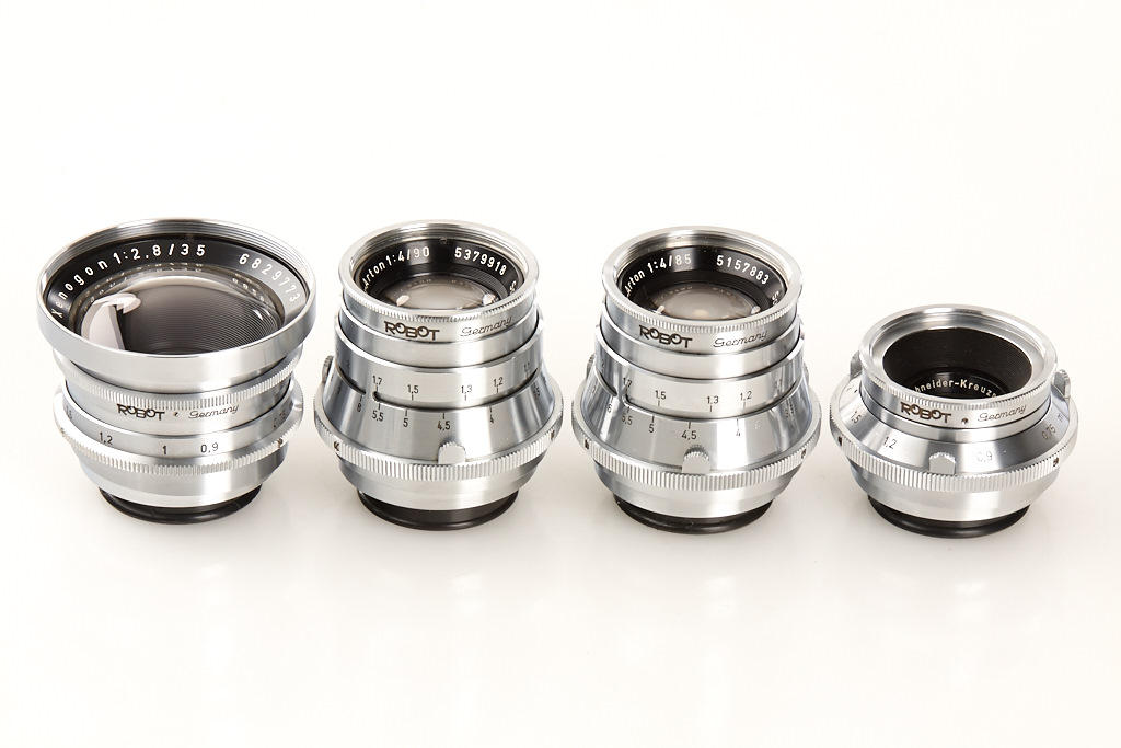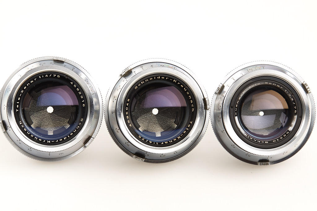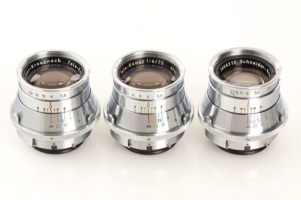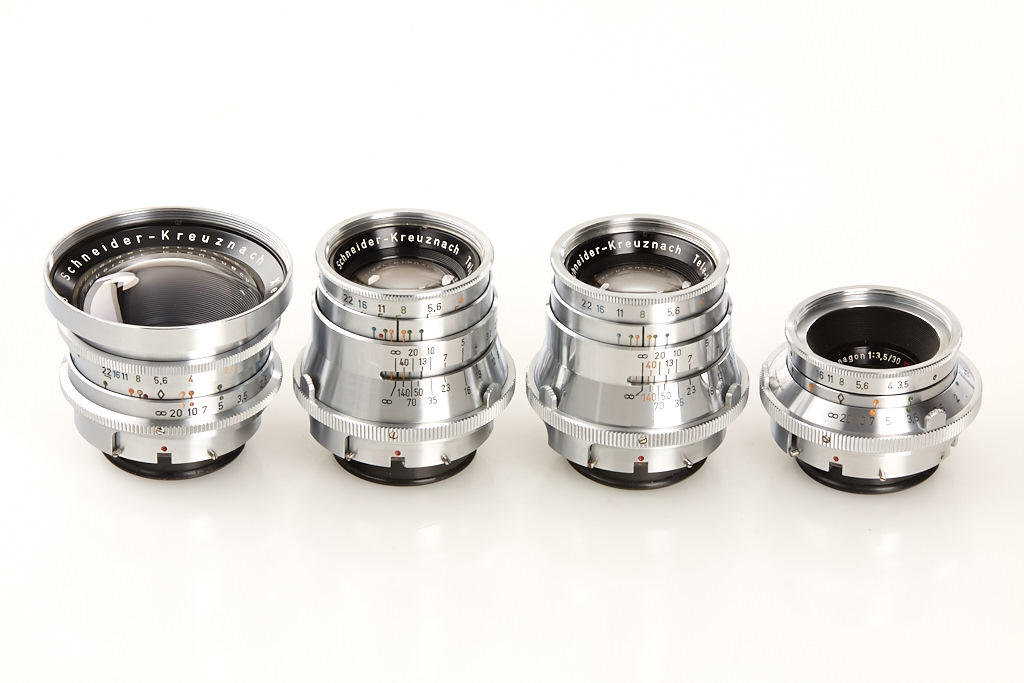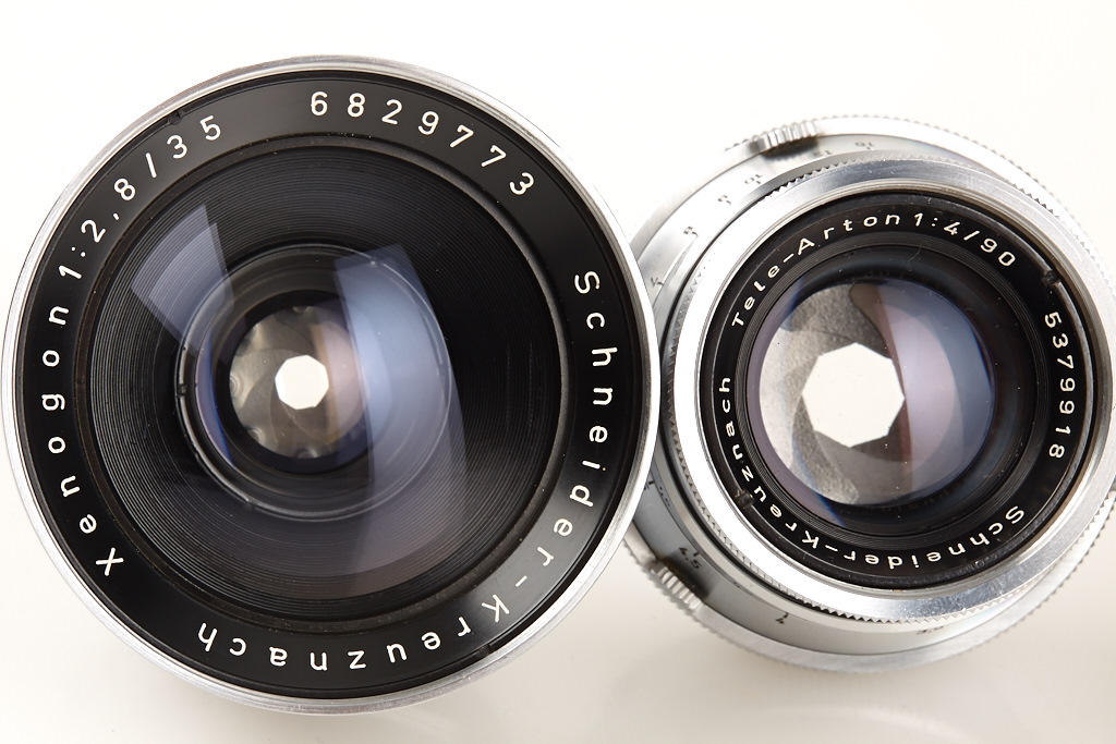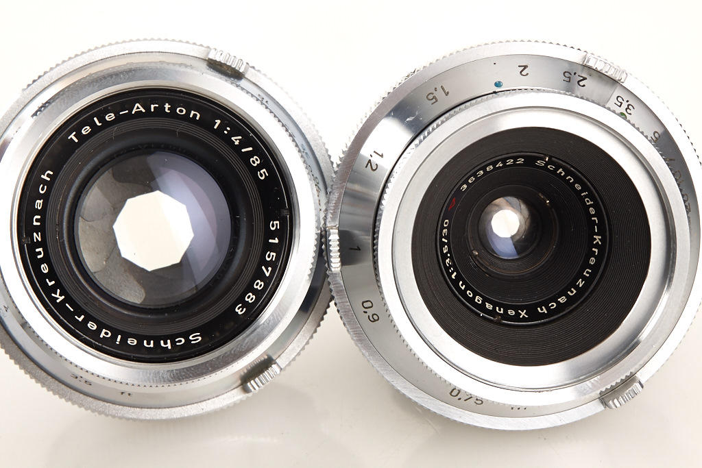 very clean body in good working order with 8 matching different lenses, (1) Xenagon 3.5/30mm no.3638422, (2) Xenogon 2.8/35mm no.6829773, (3) Xenar 2.8/45mm no.4512576, (4) Tele-Xenar 4/75mm no.4582916, (5) Tele-Xenar 4/75mm no.4695048, (6) Tele-Xenar 3.8/75mm no.3856310, (7) prototype Tele-Arton 4/85mm no.5157883 (only 4 examples made, nos.5157880-5157883), (8) very rare Tele-Arton 4/90mm no.5379918 - all lenses with clean lenses and caps