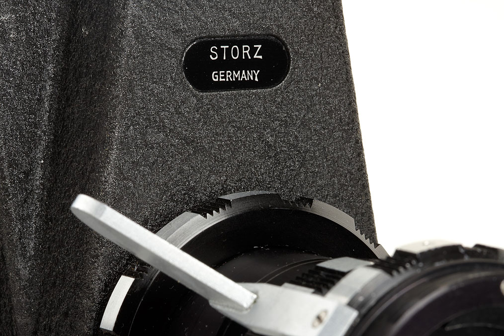 second version in black/chrome (rare, approx. only 200 produced) with very rare STORZ reflex chamber for endoscopic photography, f=90mm tube and f=70mm tube