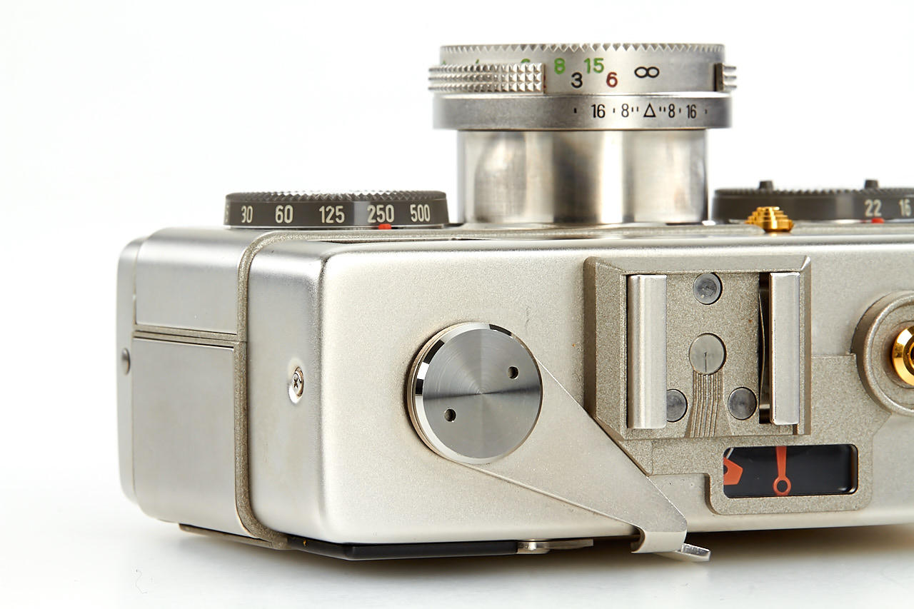 late Rollei 35 in titanium finish, made in Germany, with HFT Sonnar 2.8/40mm, in excellent condition, tiny dent on one edge, with lens cap, case, 20REB flash