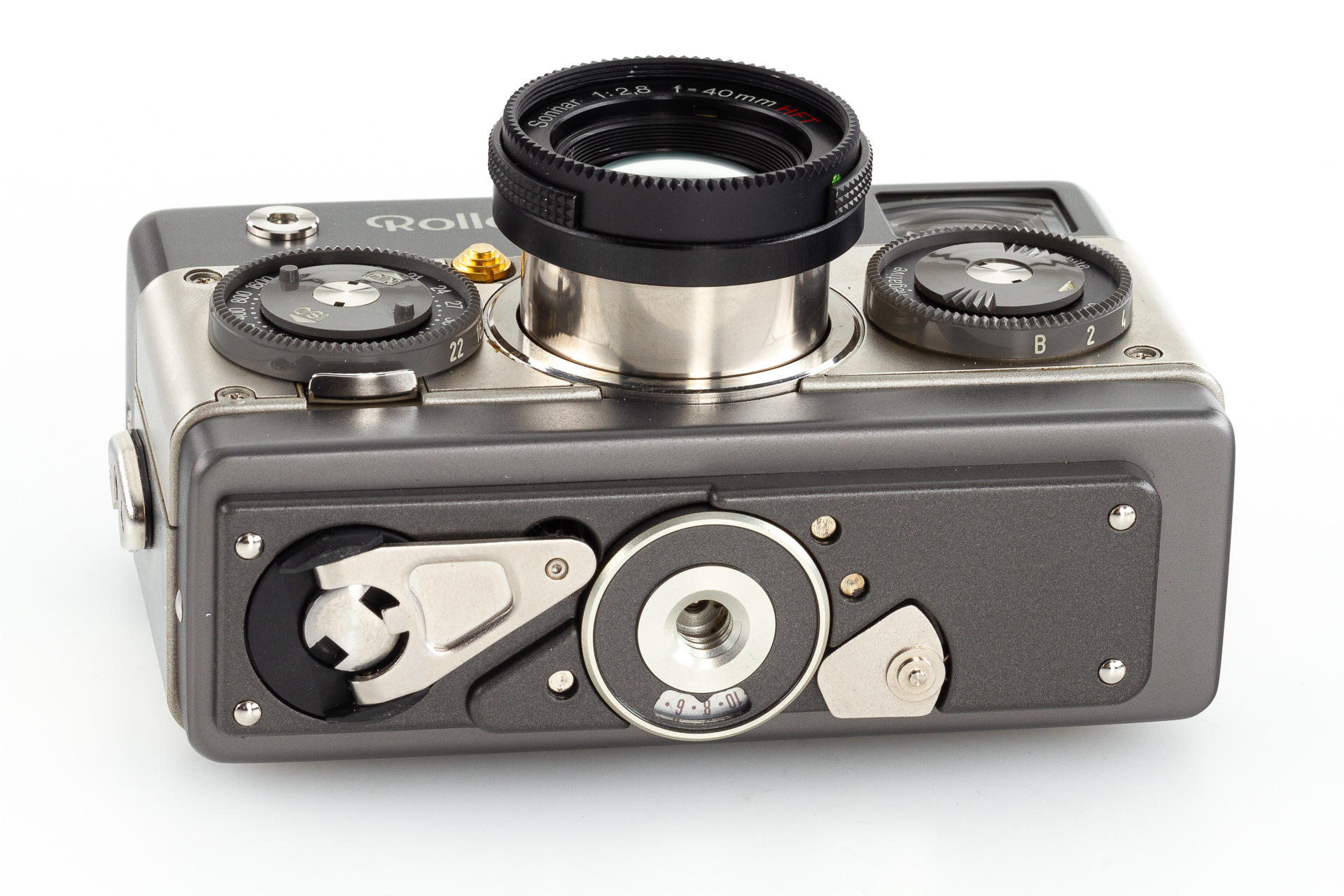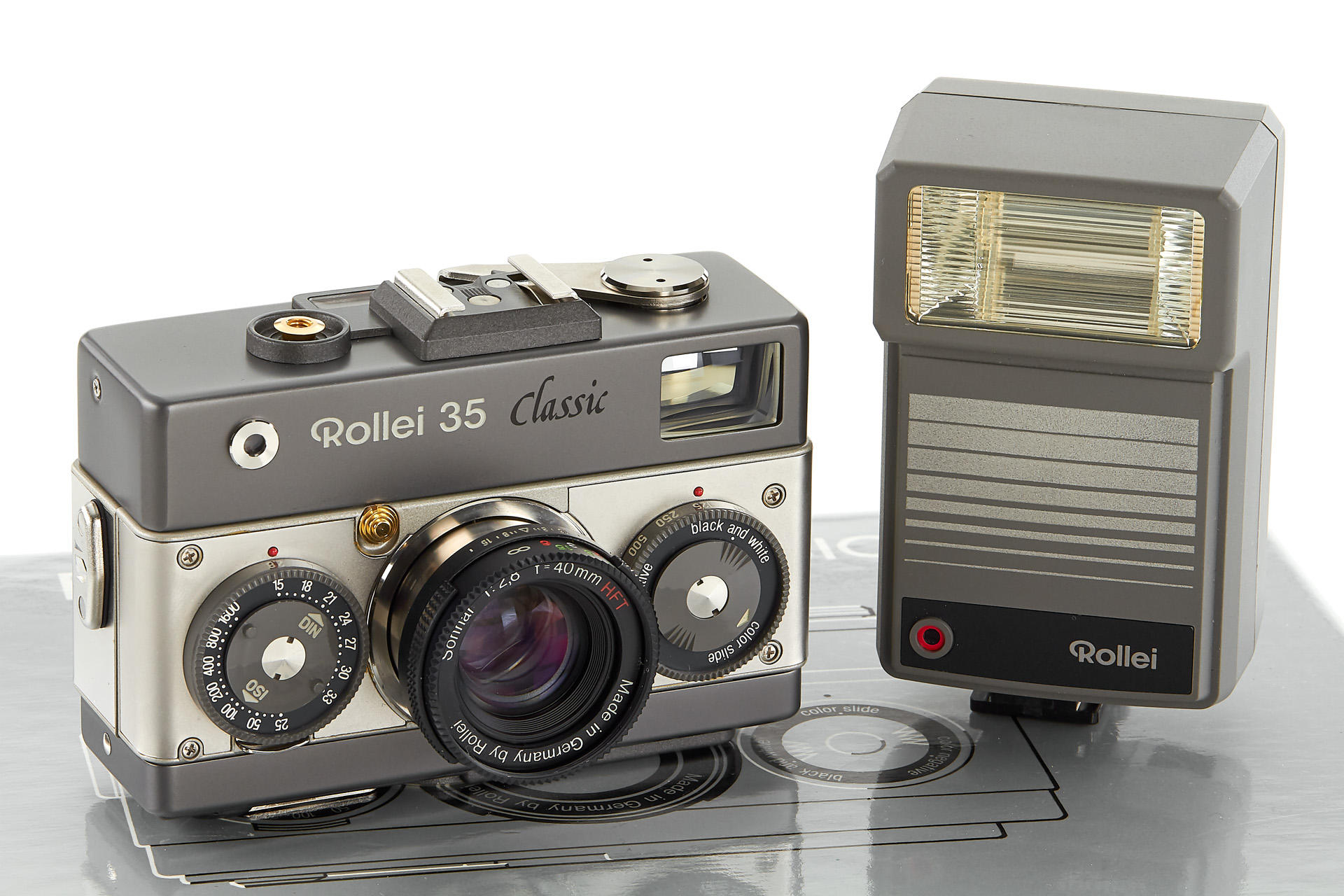 late special edition Rollei 35 in Titanium finish, made in Germany, with Sonnar 2.8/40mm, complete with lens cap, MCM case, 20REB flash and all papers, in maker's box
