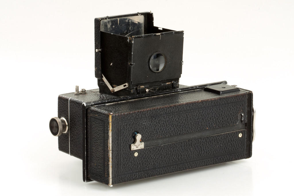 6x13cm, late type second model without F&H emblem, a pair of Tessar 4.5/7.5cm lenses no.710922/23, magazine back