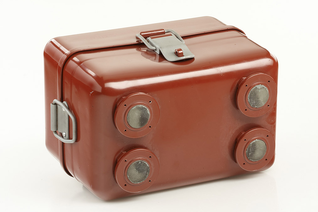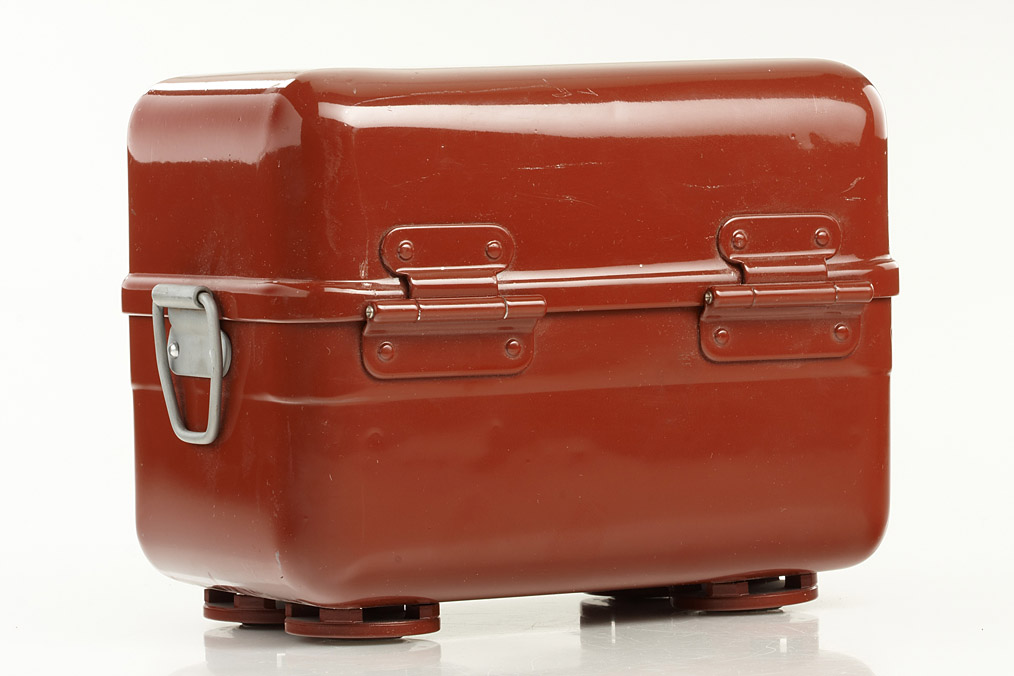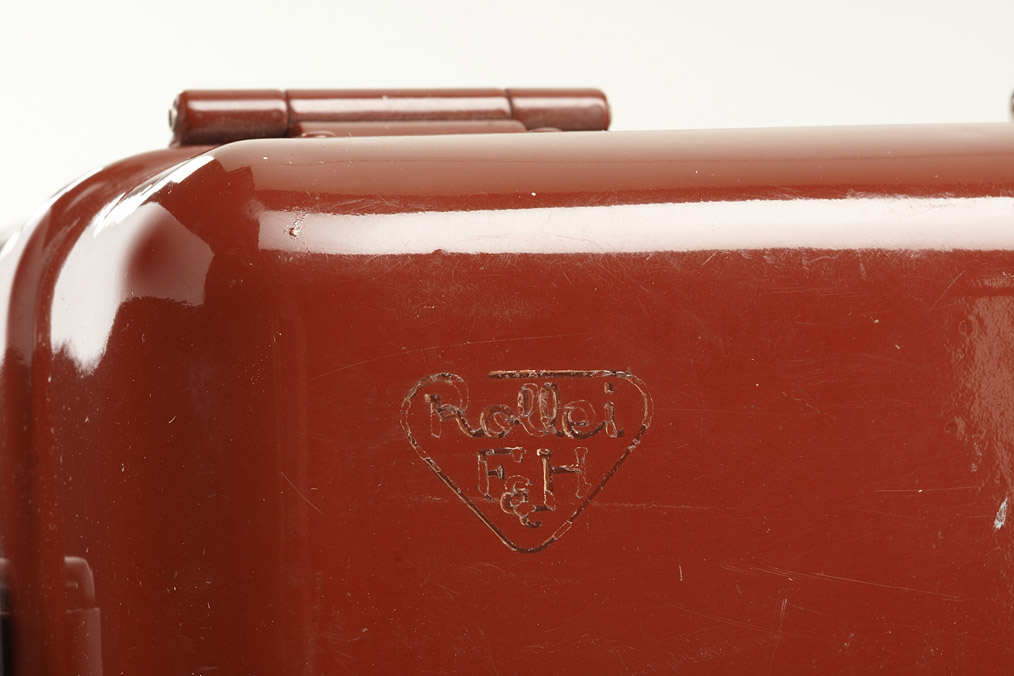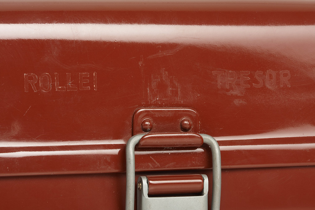 red metal box to protect or store a camera, in very good original condition, marked: Rollei F&H Franke & Heidecke Braunschweig ROLLEI TRESOR, lit ' Rollei Report 2' page 470 prototype PR244