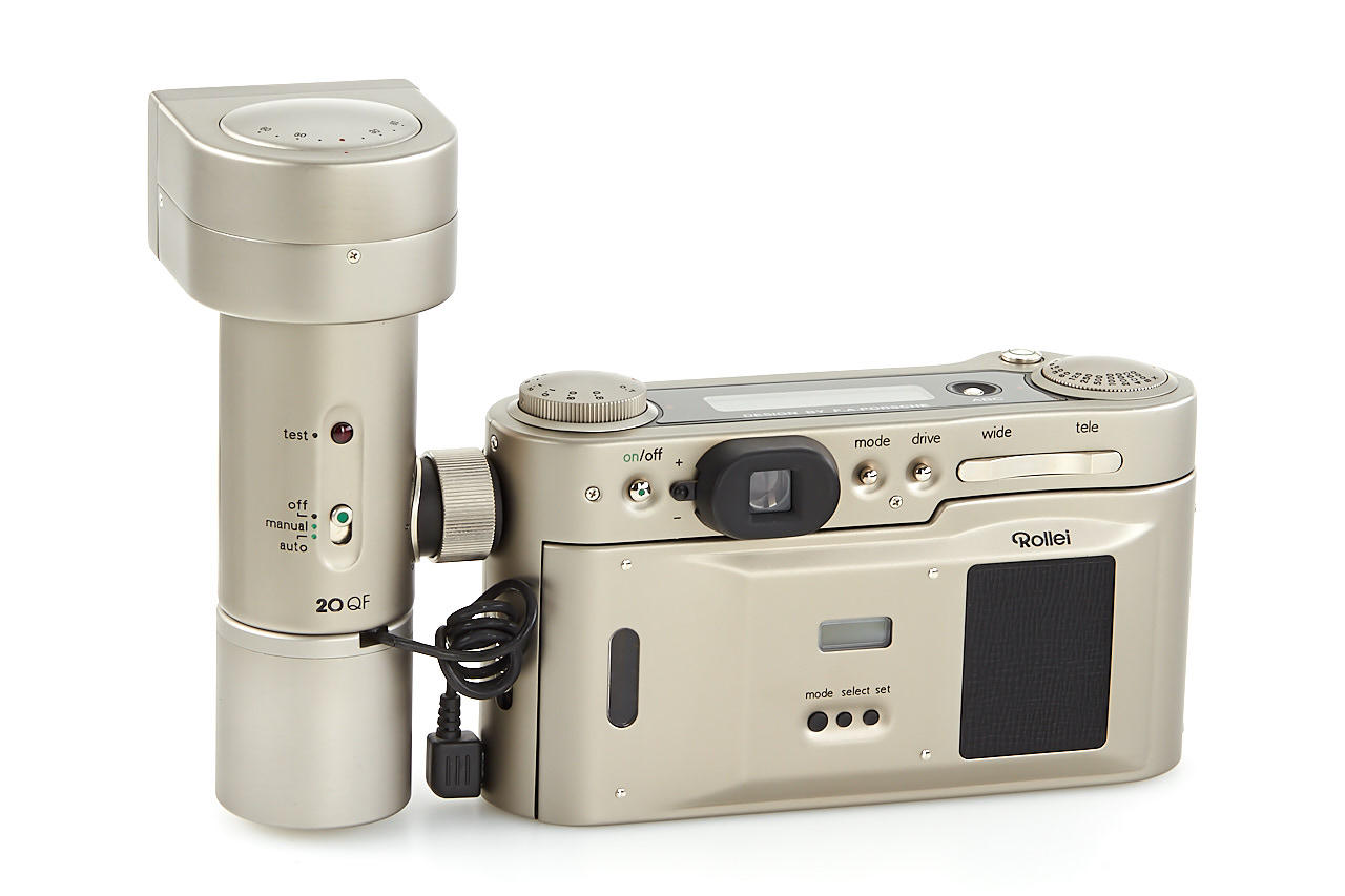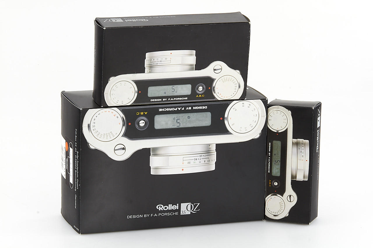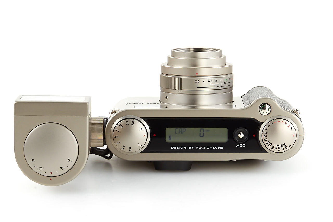 35mm film camera designed by F.A. Porsche, in mint condition, complete set in maker's box, with boxes cases for camera and flash