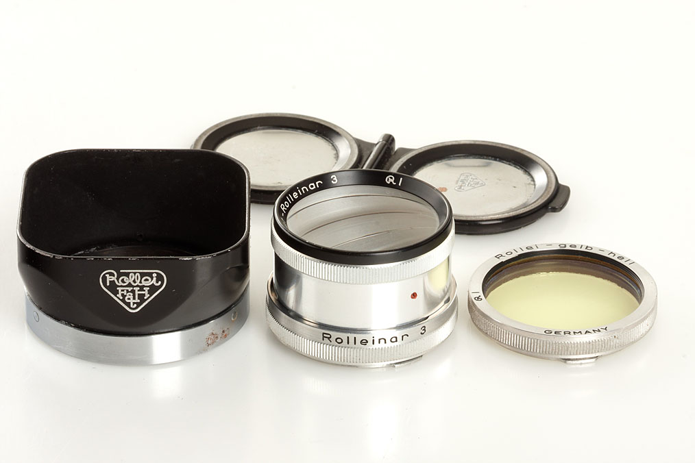 second type with Xenar 3.5/75mm no.5422773 in good working order, case, hood, cap, filters