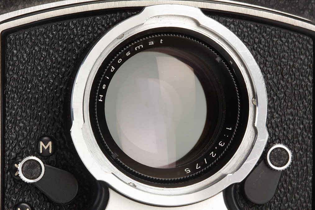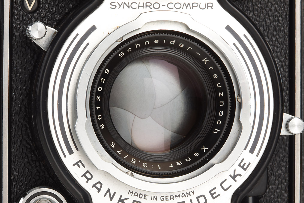 in very fine condition (small dent on finder hood), Xenar 3.5/75mm no.8013029, hood, case, strap, Rolleinar 1, Rolleinar 2