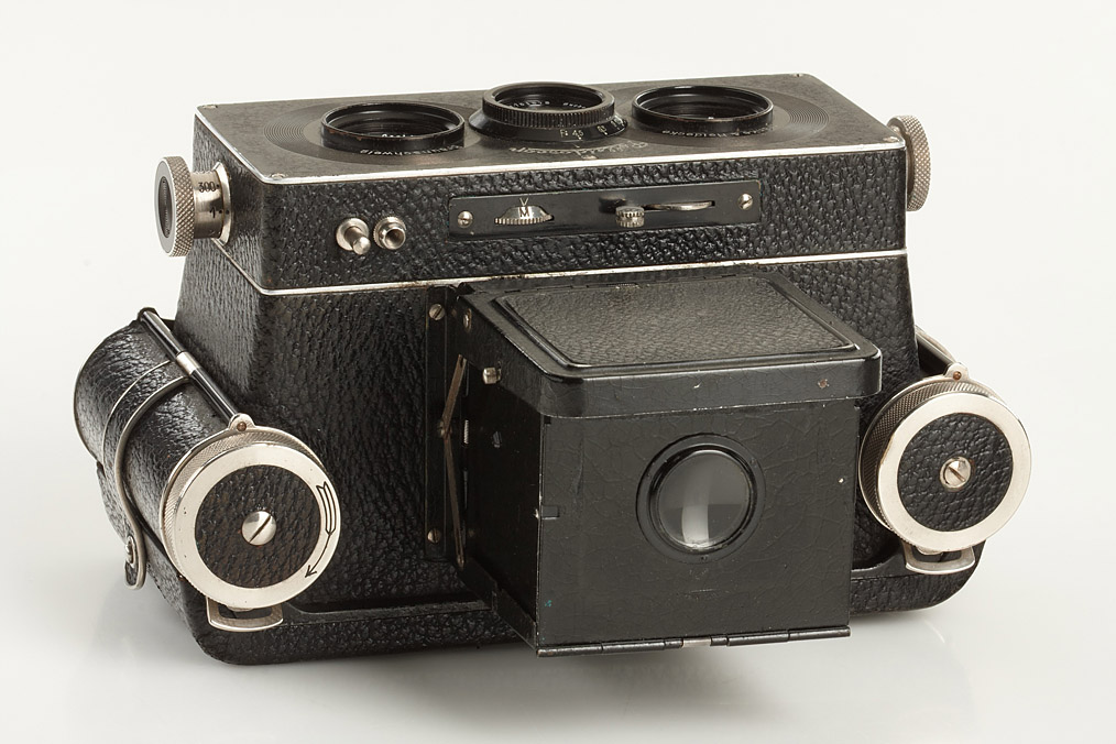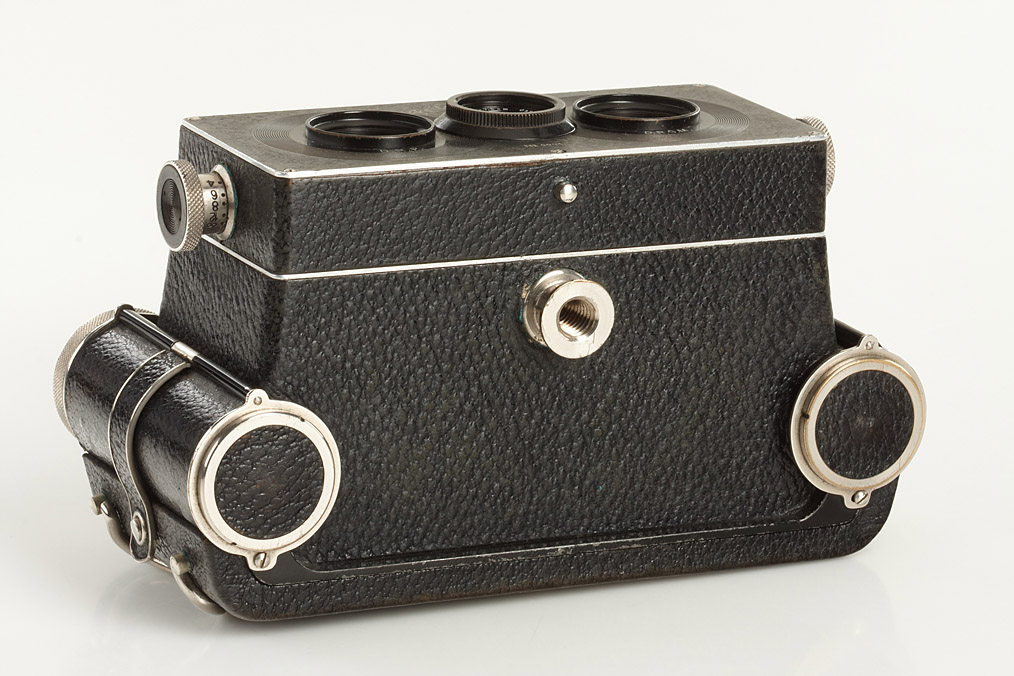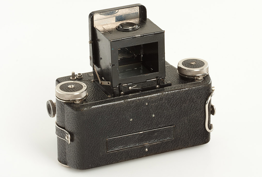 6x13cm, very early second model in original condition, mirror missing inside, shutter and focus working, with everready case