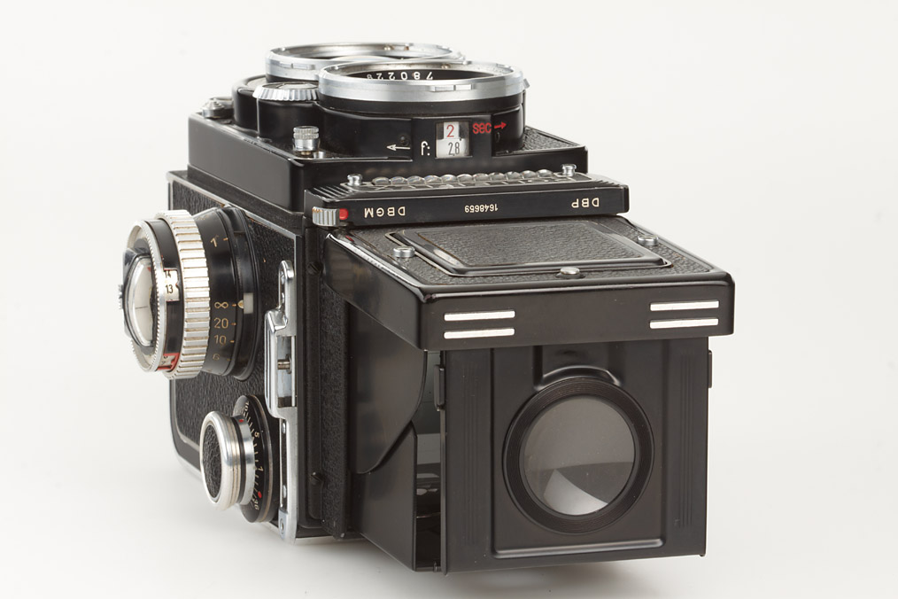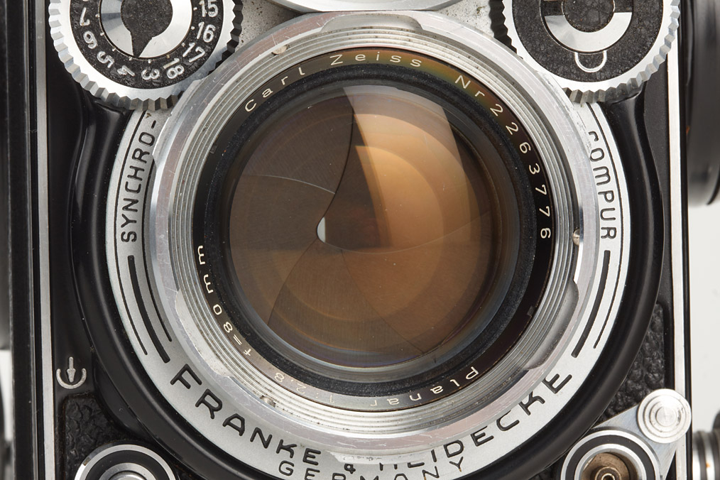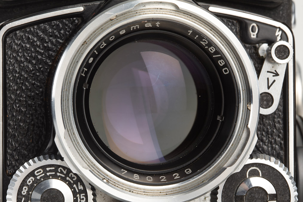 in very fine cosmetically condition, Planar 2.8/80mm no.2263776 taking lens with small balsam fault/separation, Heidosmat 2.8/80mm no.780229 viewing lens, meter not accurate