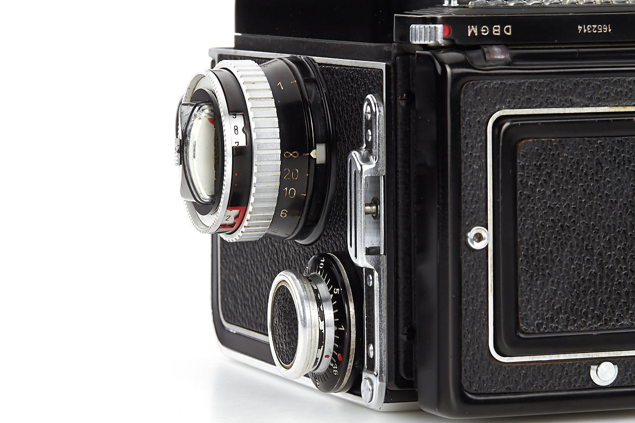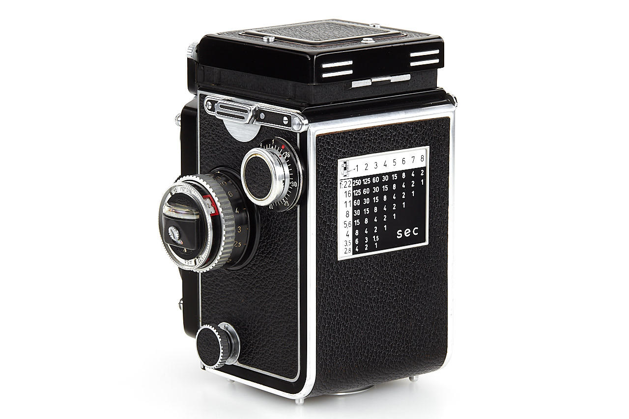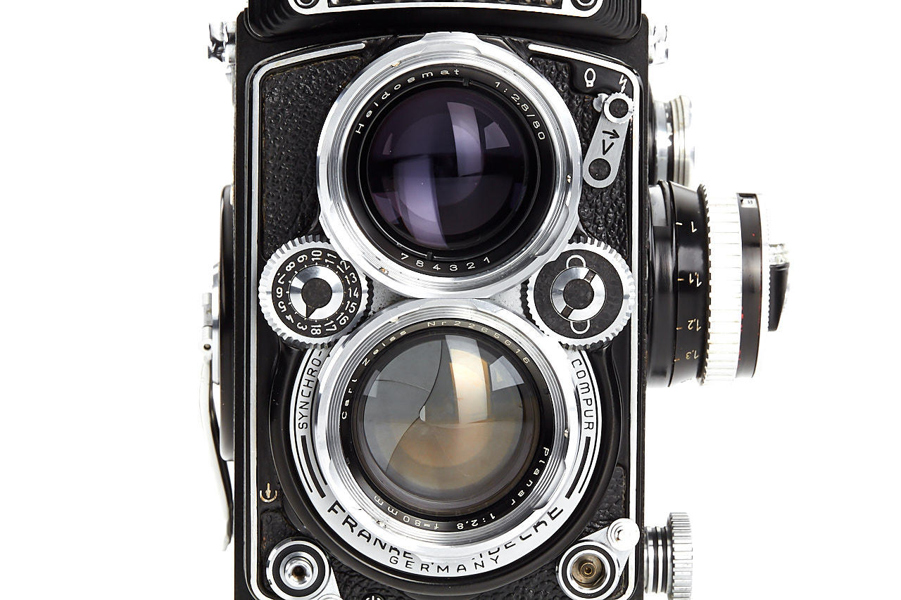 metered Rolleiflex in near mint condition and in good working order (meter not reacting), clean Planar 2.8/80mm no.2265616 taking lens, with metal lens cap