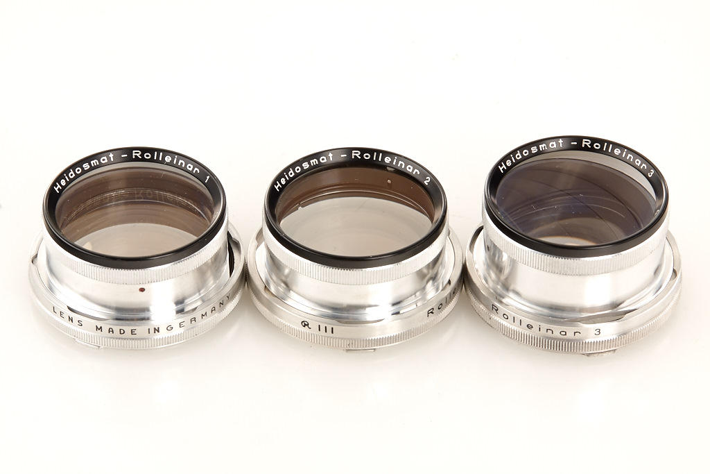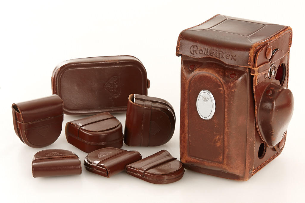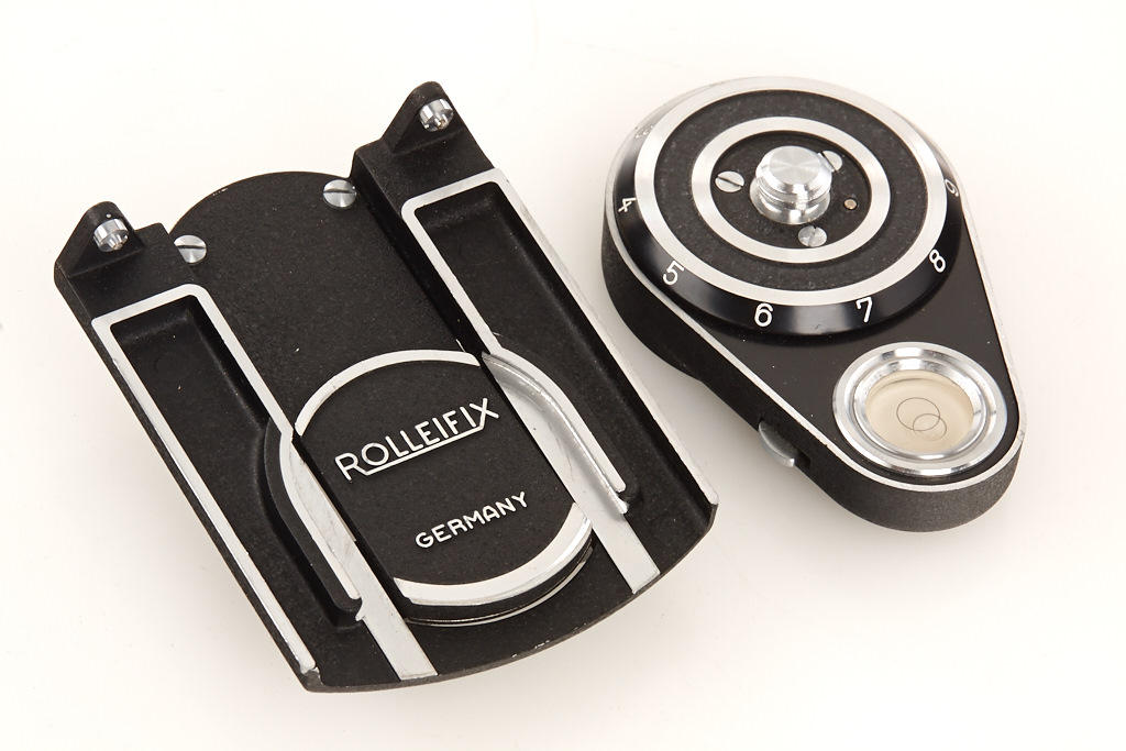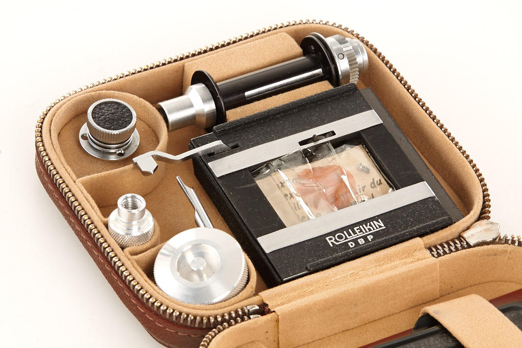 early 2.8F in very fine condition and good working order with working meter, Planar 2.8/80mm no.3252419 (cap), everready case, strap, hood (maker's box), panoramic head (maker's box), spare focusing screen (maker's box), Rolleikin (maker's box), Rolleifix, Rolleipol (maker's box), Rolleinar 1-3, Rolleinar 0.75, 3 colour filters (yellow, green, red)