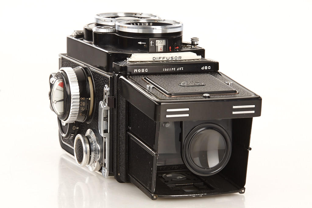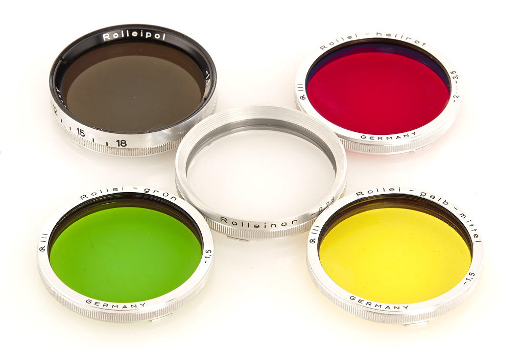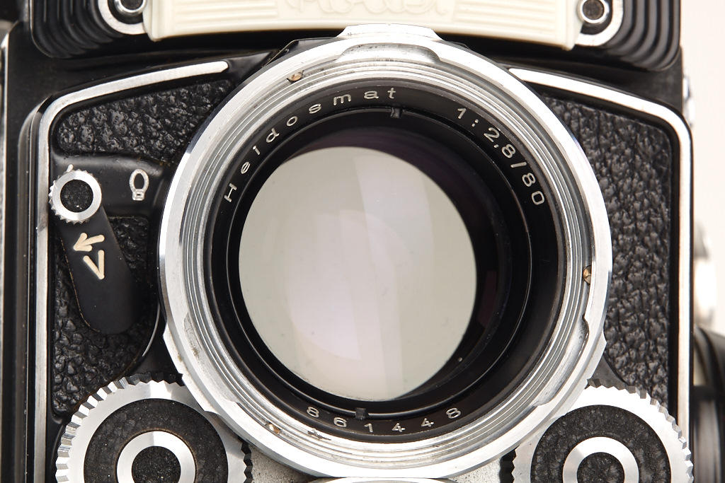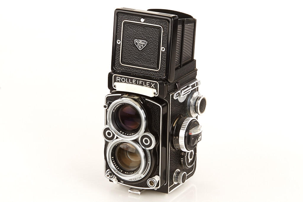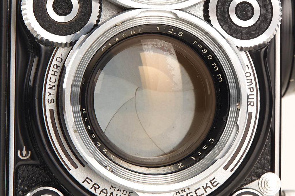early 2.8F in very fine condition and good working order with working meter, Planar 2.8/80mm no.3252419 (cap), everready case, strap, hood (maker's box), panoramic head (maker's box), spare focusing screen (maker's box), Rolleikin (maker's box), Rolleifix, Rolleipol (maker's box), Rolleinar 1-3, Rolleinar 0.75, 3 colour filters (yellow, green, red)