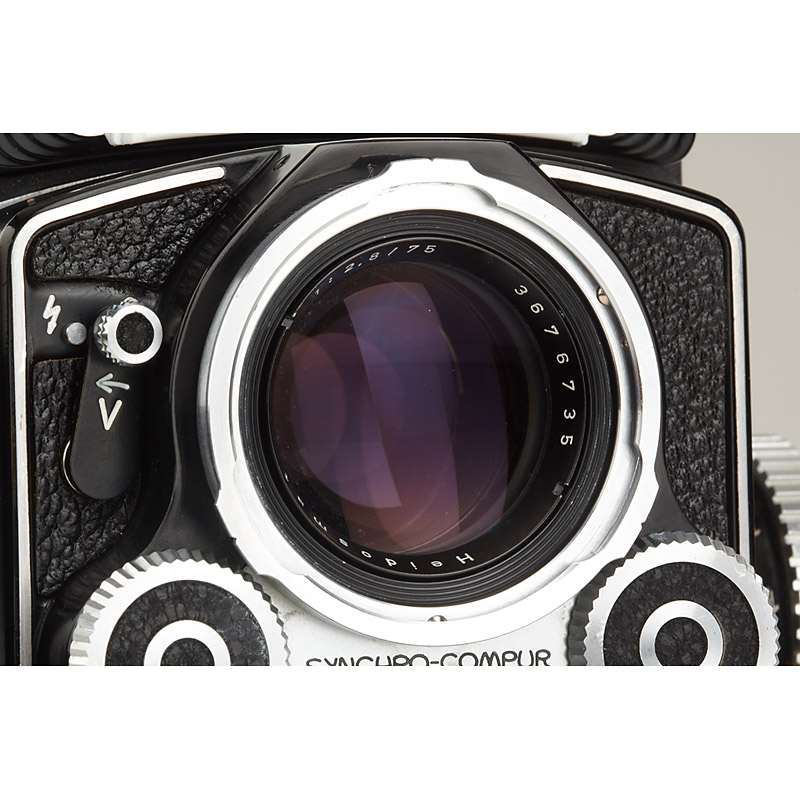 in near mint condition and good working order with Planar 3.5/75mm no.3479501 taking lens, Heidosmat 2.8/75mm no.3676735 viewing lens, diffuser