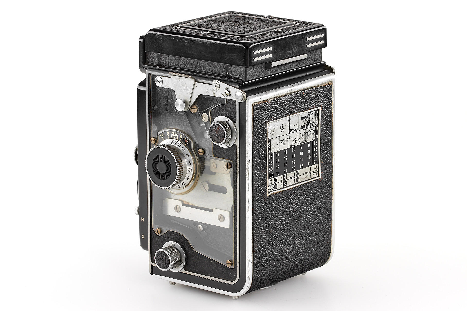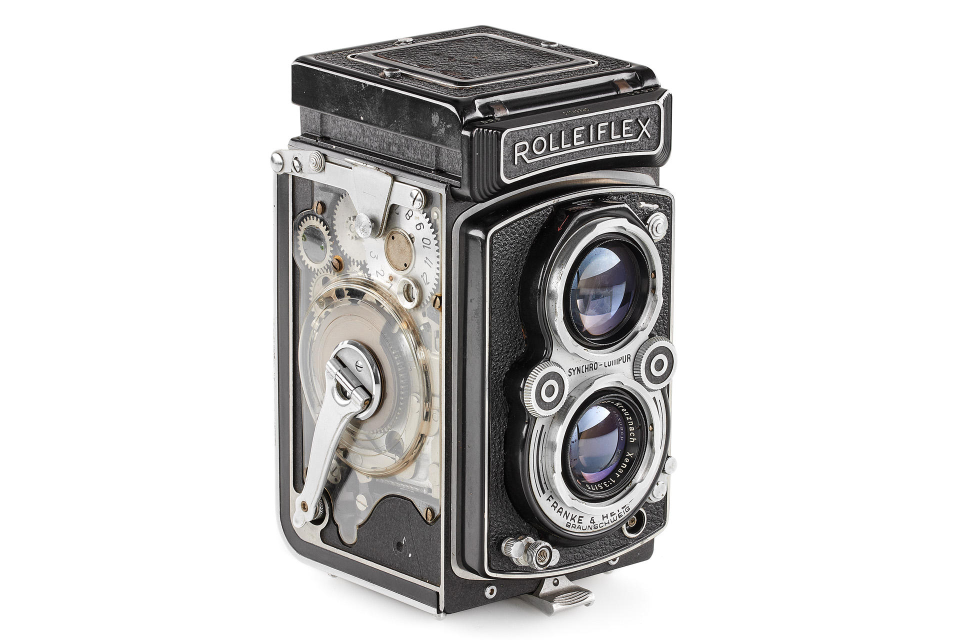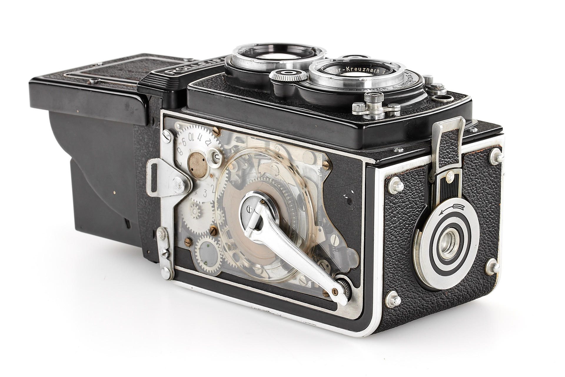 extremely rare demonstration model with two transparent sides to show the mechanisms inside, in good condition and working order, the viewing lens has no serial number, the taking lens is a Xenar 3.5/75mm no.2345432 (typical number for a dummy Schneider lens)