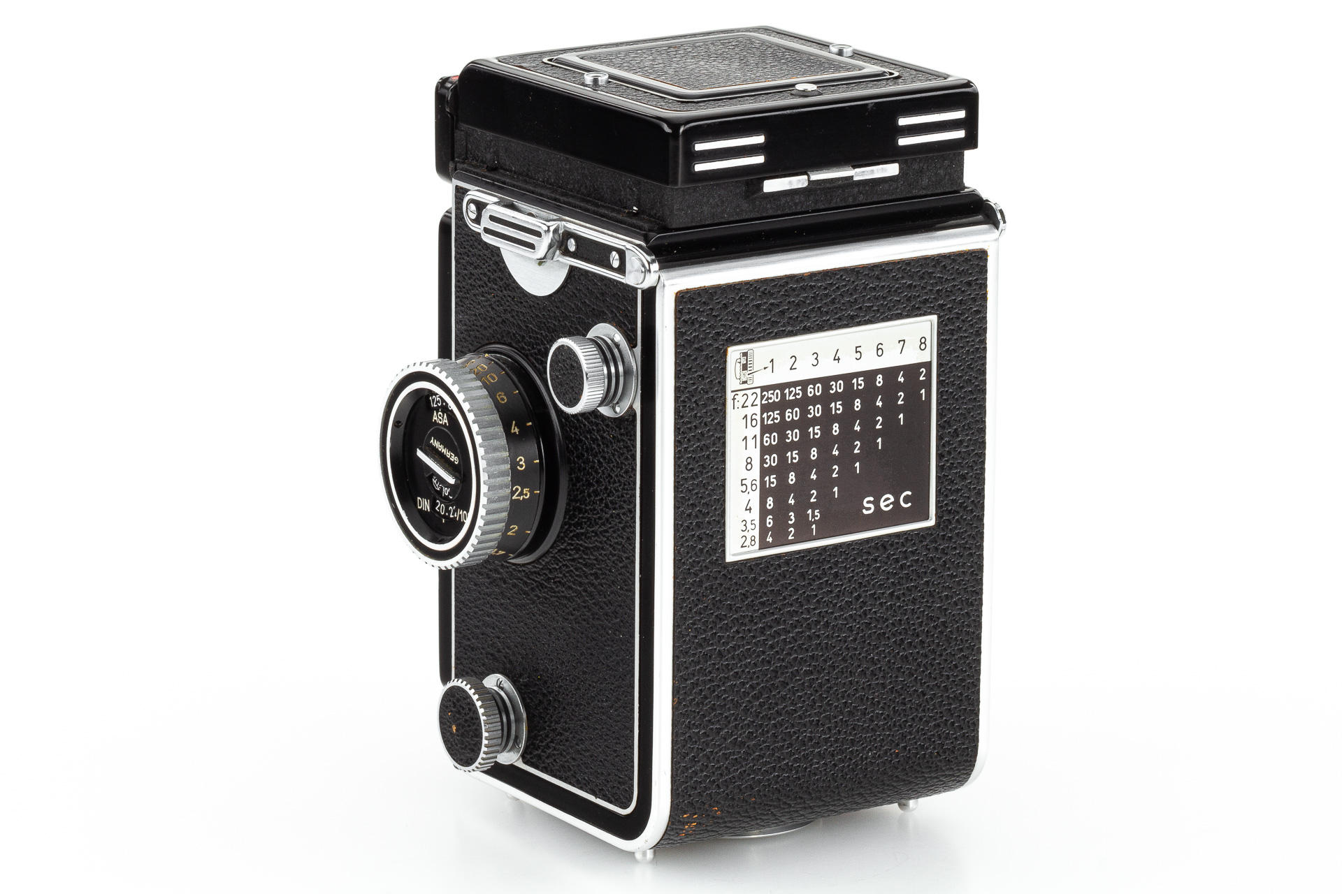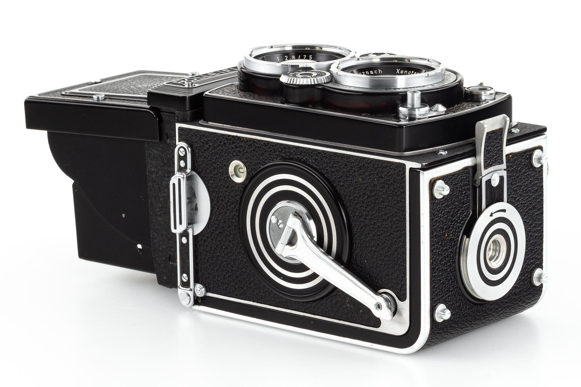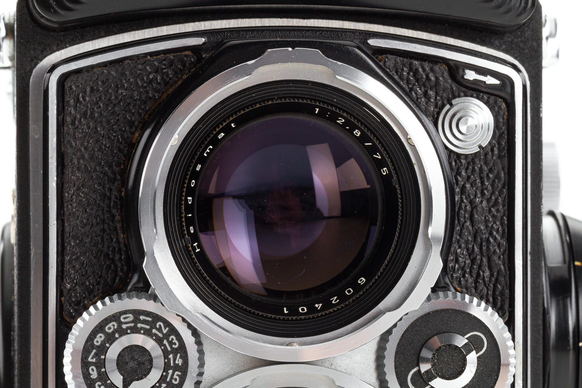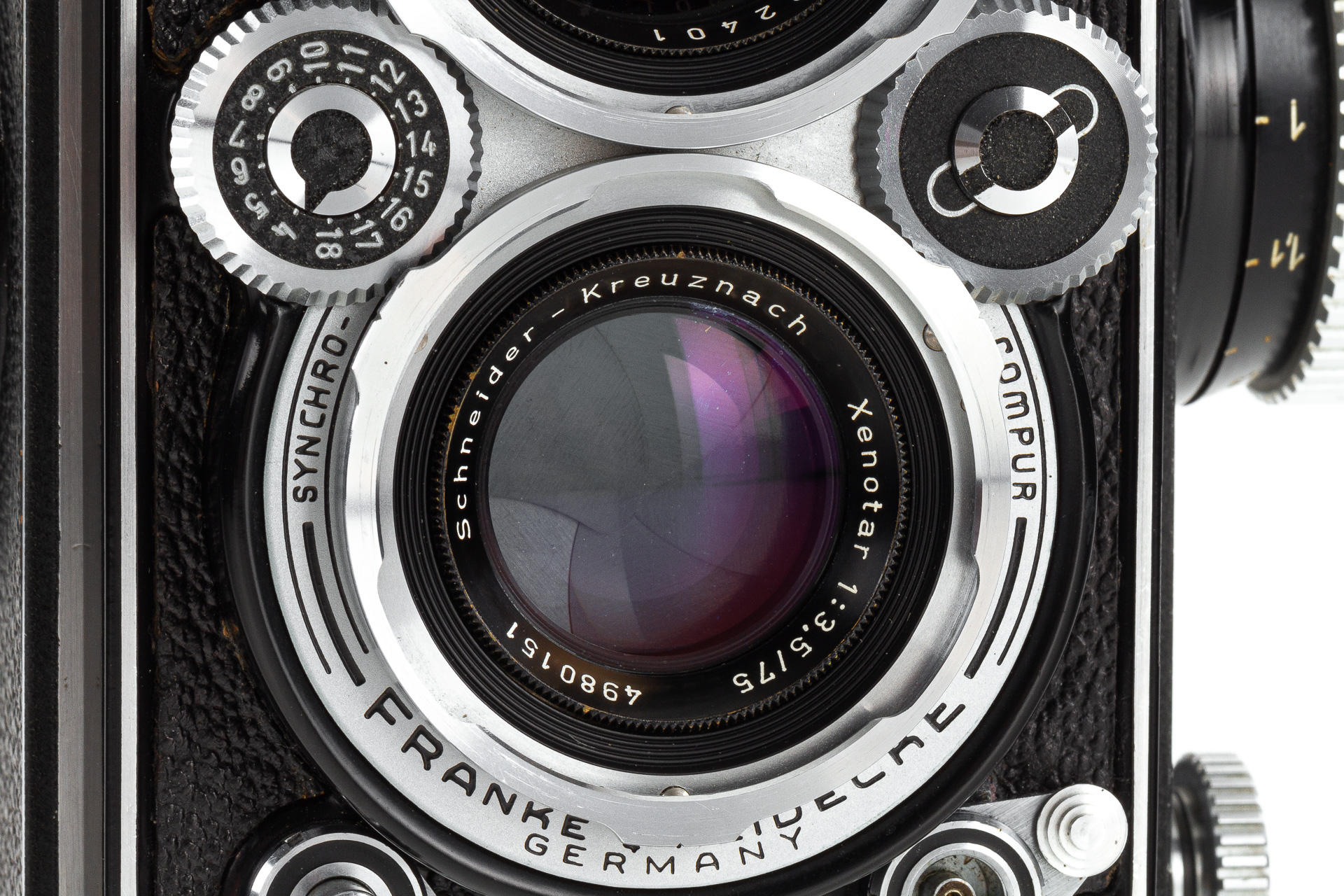 second version Rolleiflex 3.5C in near mint condition and good working order, with Xenotar 3.5/75mm no.4980151, leather case and strap