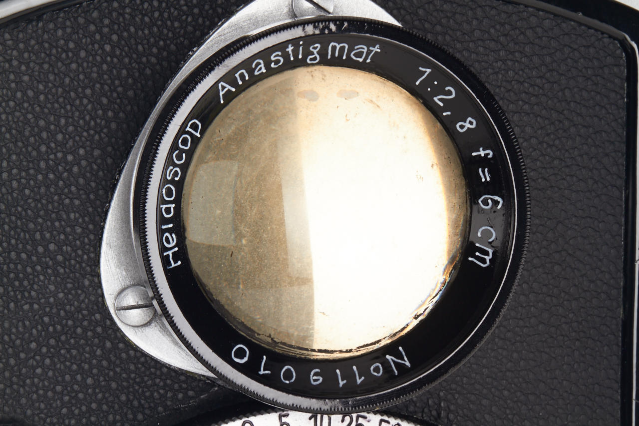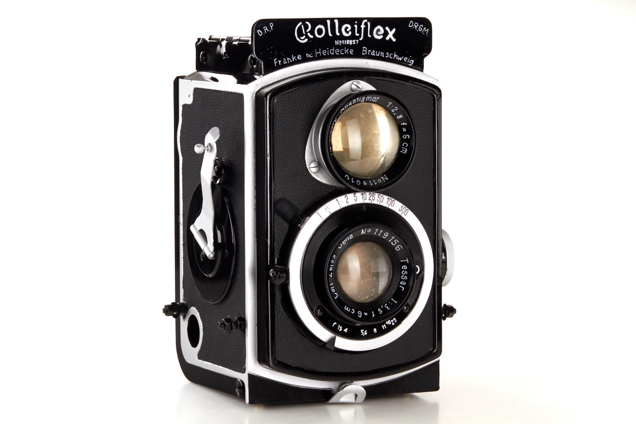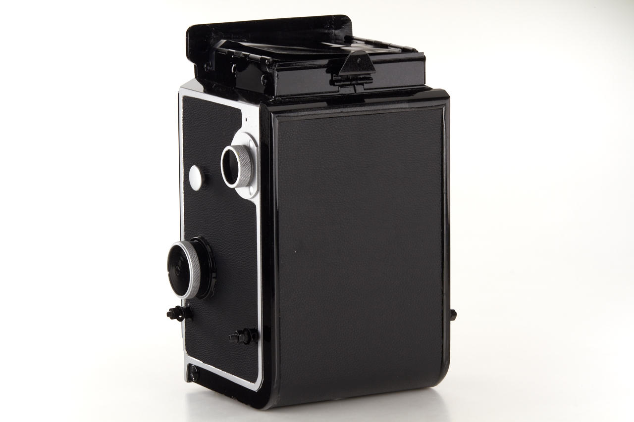 Oversized display model of the early Baby Rolleiflex, made by Franke & Heidecke in the early 1930's. Recently beautifully restored, cast body with steel elements, dimensions 44x24x30cm, top cover not included. Engraved with serial number 118857 (earlier than the first production cameras) and 'Heidoscop Anastigmat 1:2,8 f=6cm No 119010' for the taking lens, 'Carl Zeiss Jena Tessar 1:3,5 f=6cm No 119156' for the viewing lens. Very attractive and historically important item, no other is known to exist.
