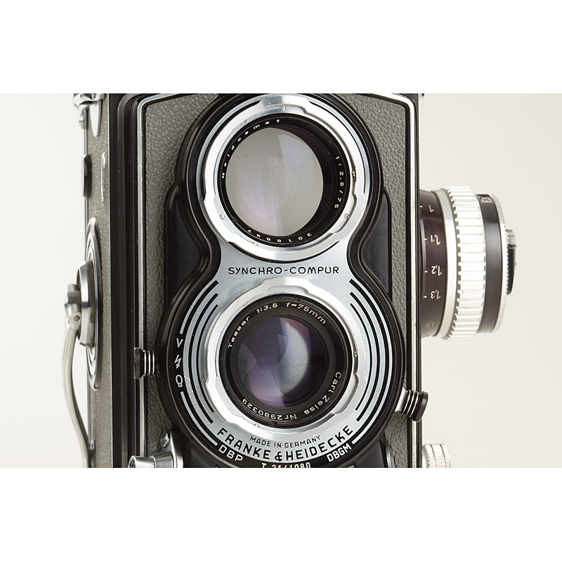 first type metered Rolleiflex T with grey leather covering, in good working order, with Tessar 3.5/75mm no.2980329