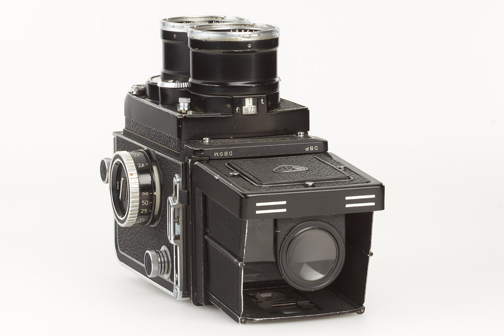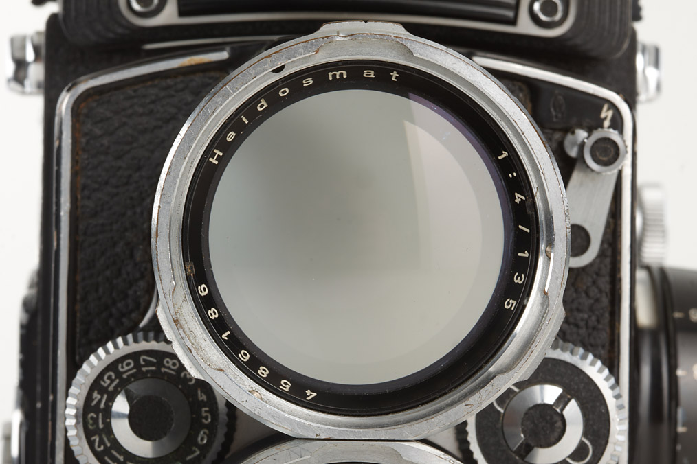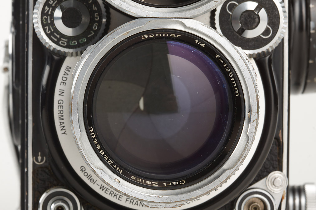 late Tele Rolleiflex with shiny front plate, Sonnar 4/135mm no.2588606 taking lens, Heidosmat 4/135mm no.4586186 viewing lens, clean finder and shutter