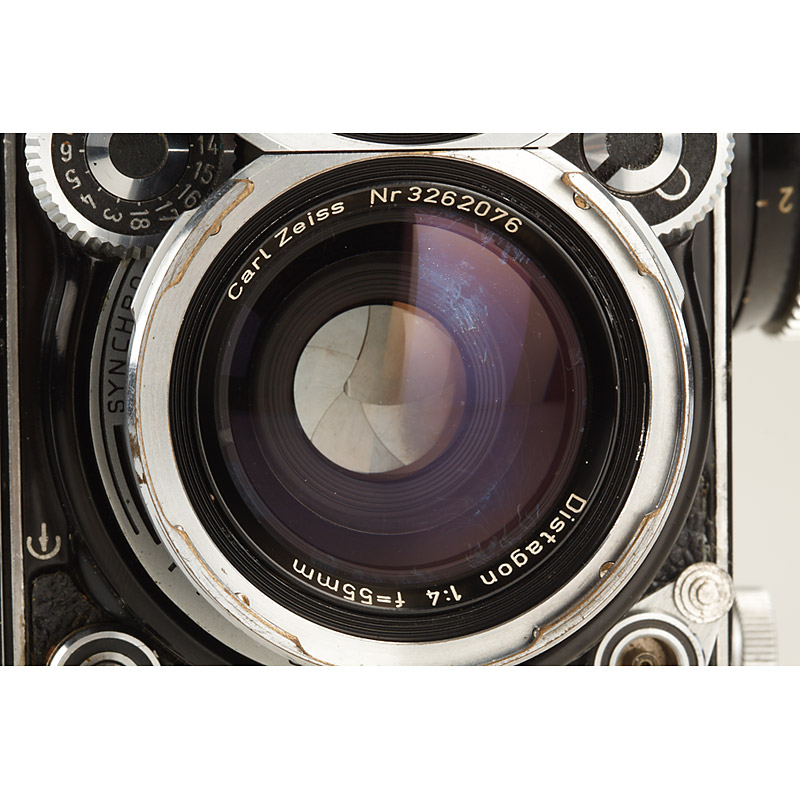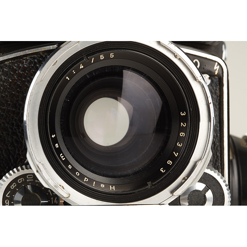 first model with early number in good working condition, mint finder hood, taking lens Distagon 4/55mm no.3262076, Heidosmat 4/55mm no.3263763 viewing lens, original everready case