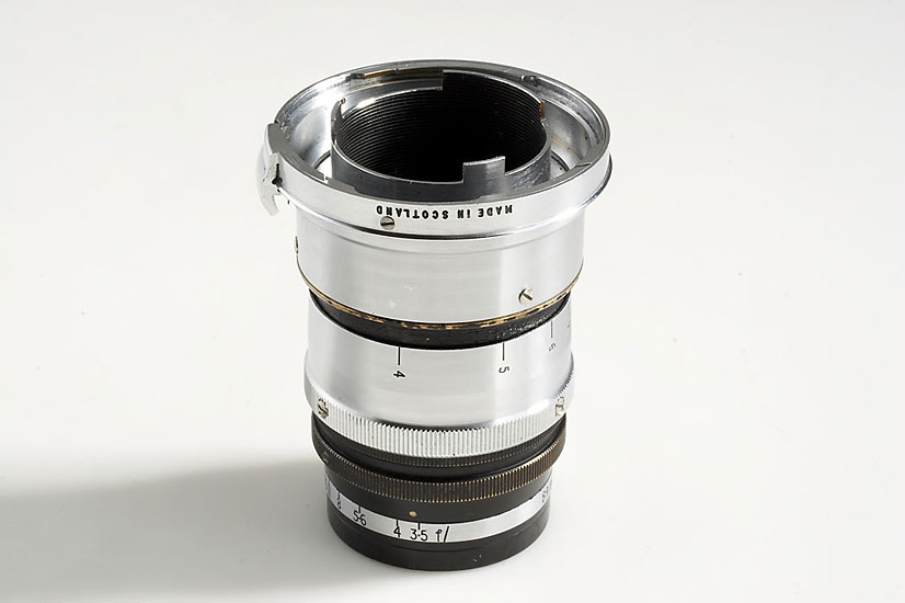 rare coated tele-lens by Ross, London with original Stewartry mount for post-war Contax, parts black painted, good condition