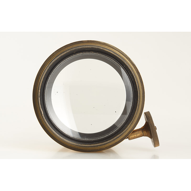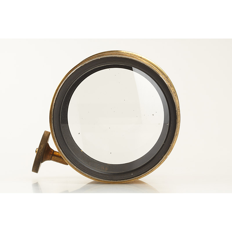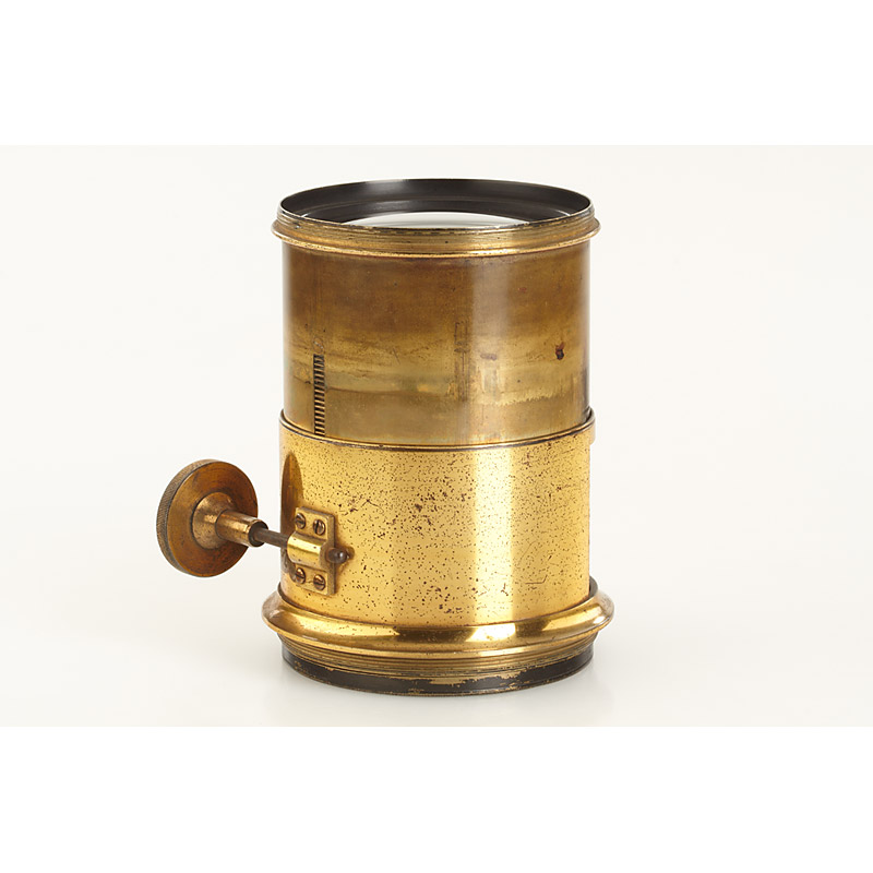 c.35cm focal length, lens diameter c.9cm, lenses with some small scratches, total height c.15cm, for waterhouse stops, rack and pinion focusing