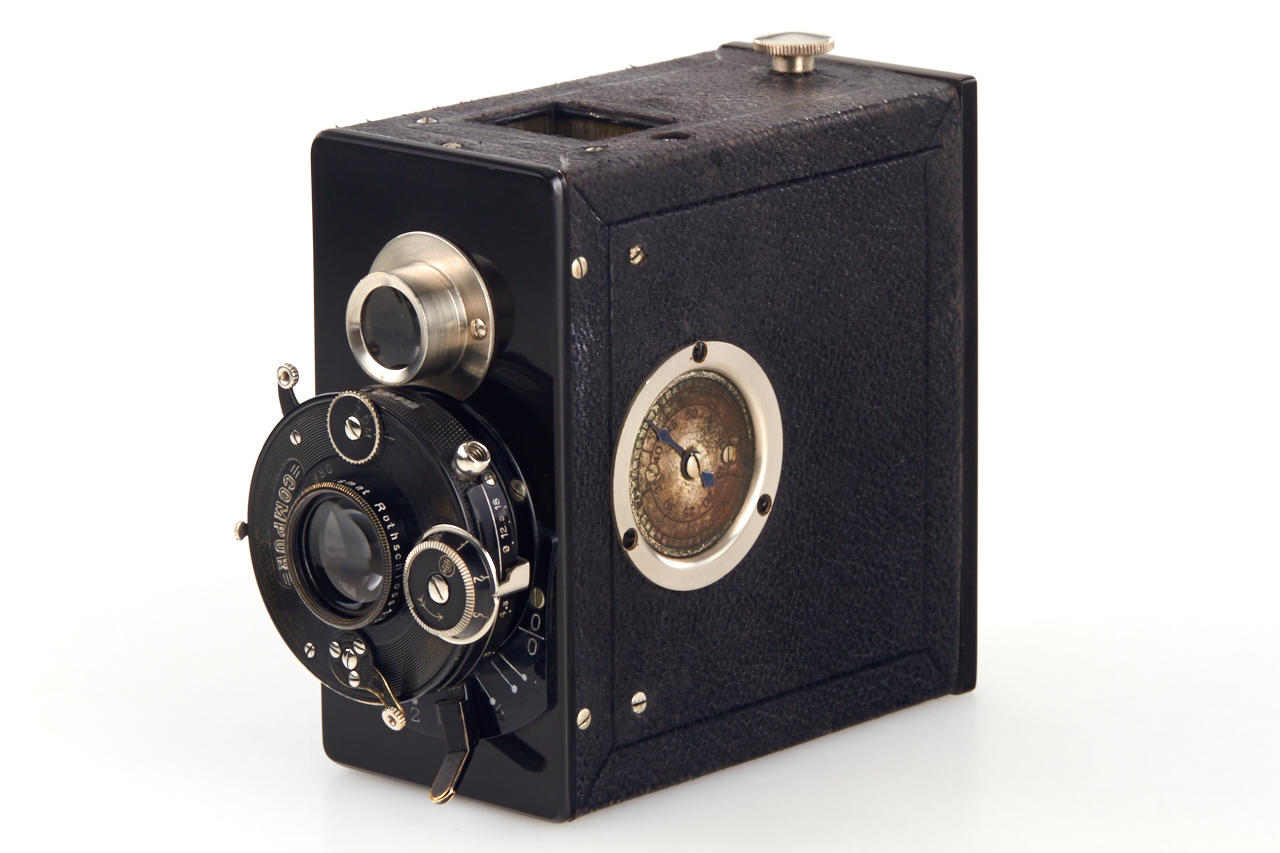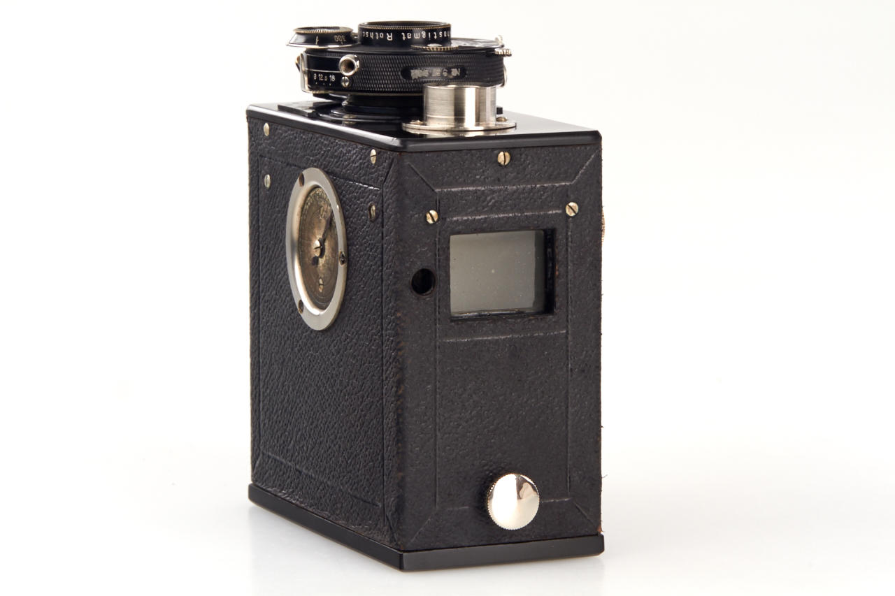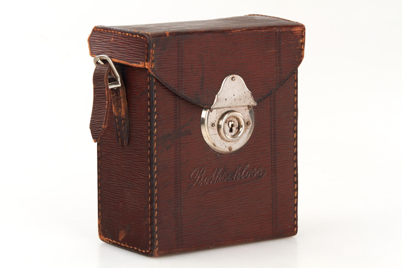 German 18x24mm camera, with TLR finder (magnifier finder missing), Rothschloss-Anastigmat 3/5cm no.371632 in dial-set Compur shutter in focusing mount, original film cassette, with Rothschloss carrying case (see Abring IV page 6), extremely rare camera and early 35mm camera in very fine condition