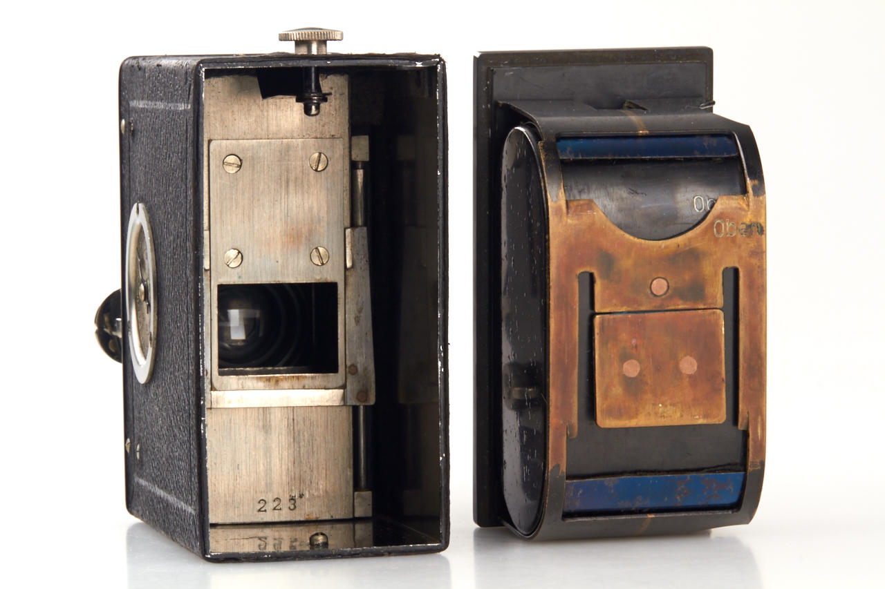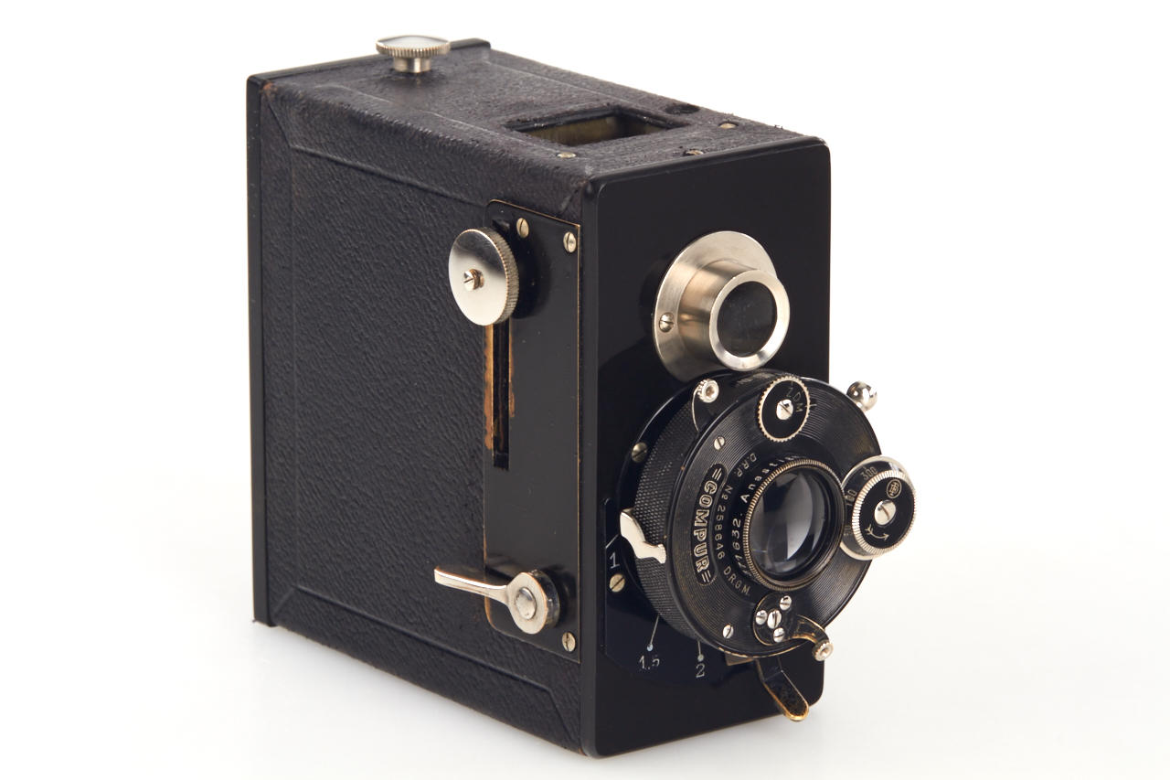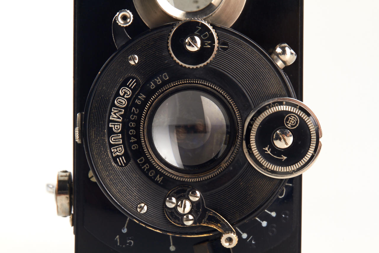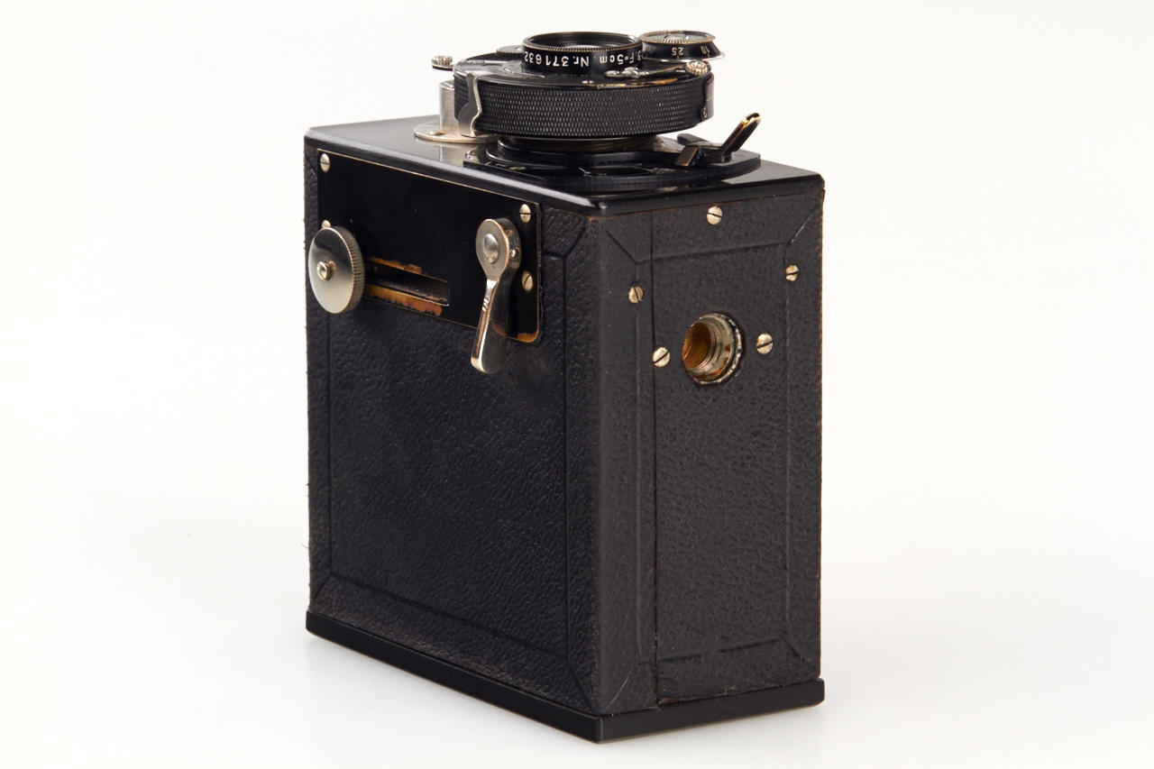 German 18x24mm camera, with TLR finder (magnifier finder missing), Rothschloss-Anastigmat 3/5cm no.371632 in dial-set Compur shutter in focusing mount, original film cassette, with Rothschloss carrying case (see Abring IV page 6), extremely rare camera and early 35mm camera in very fine condition
