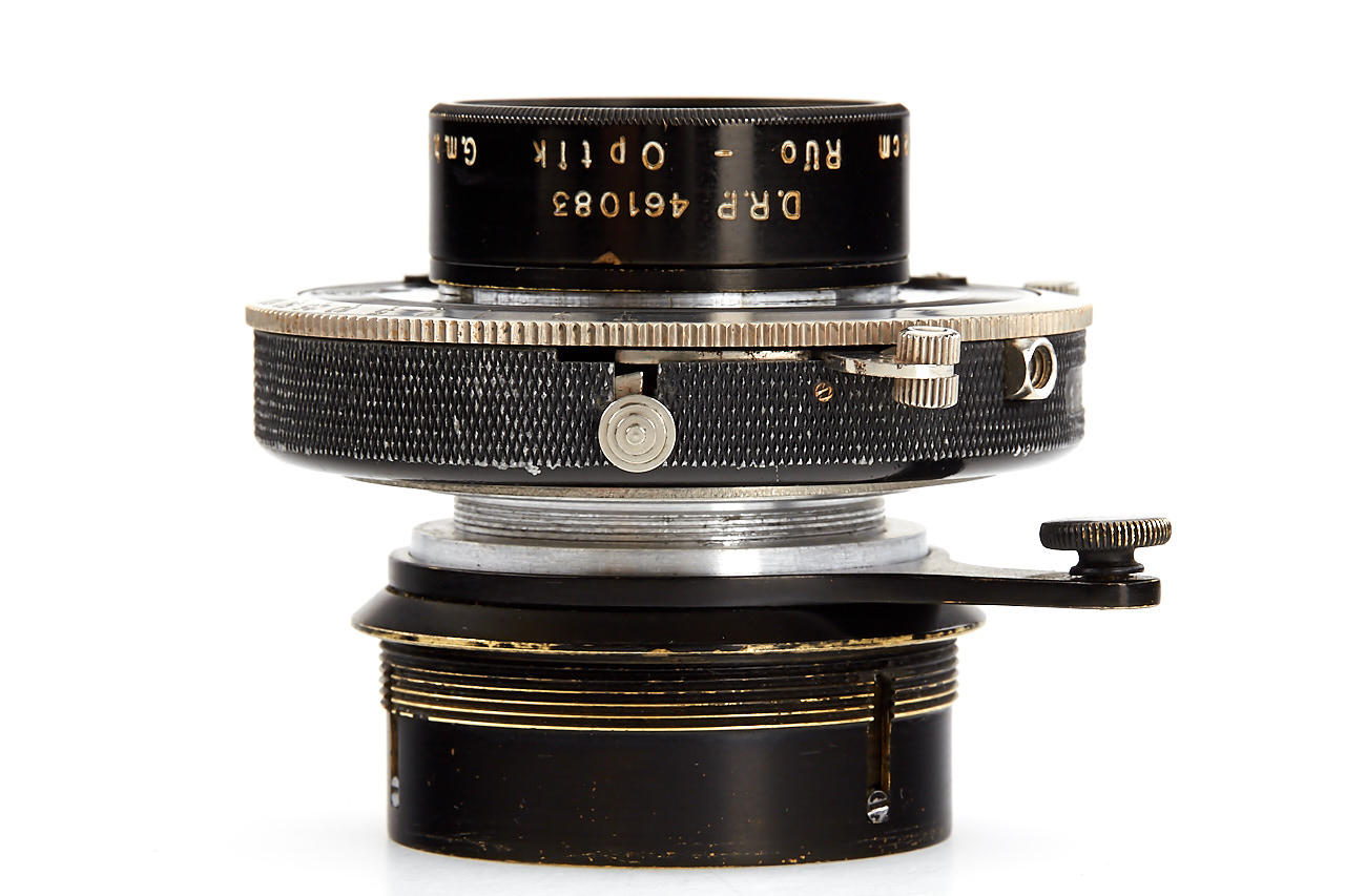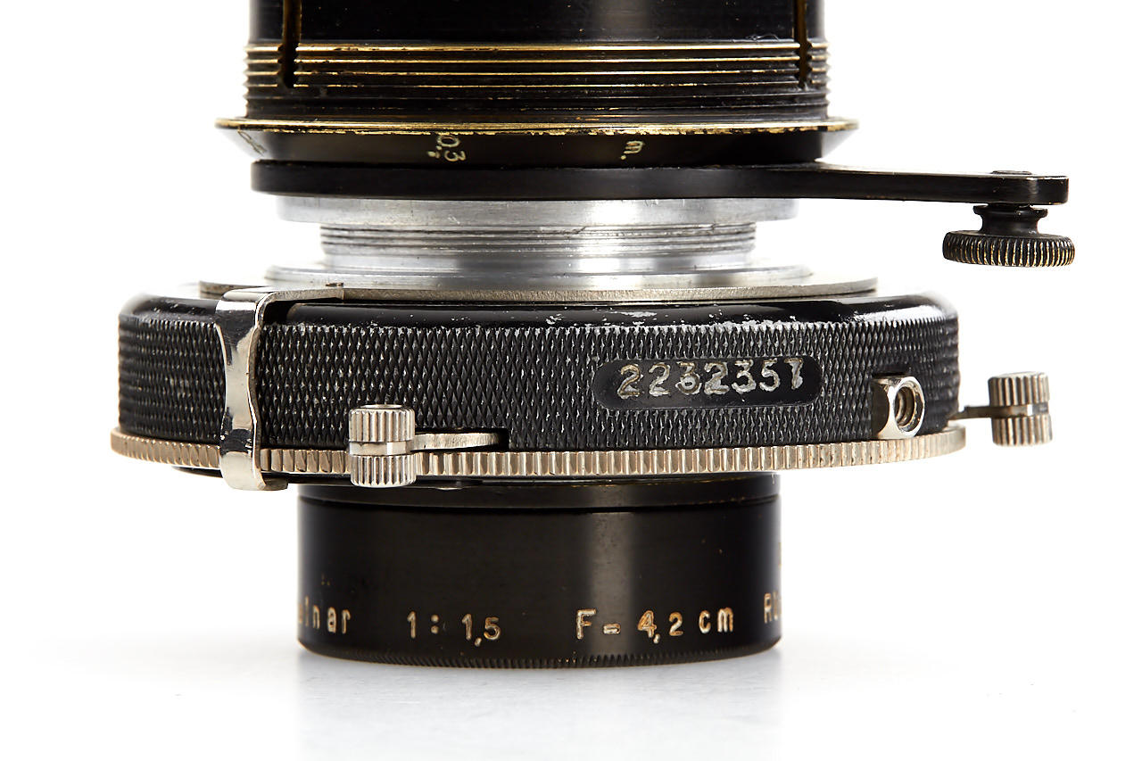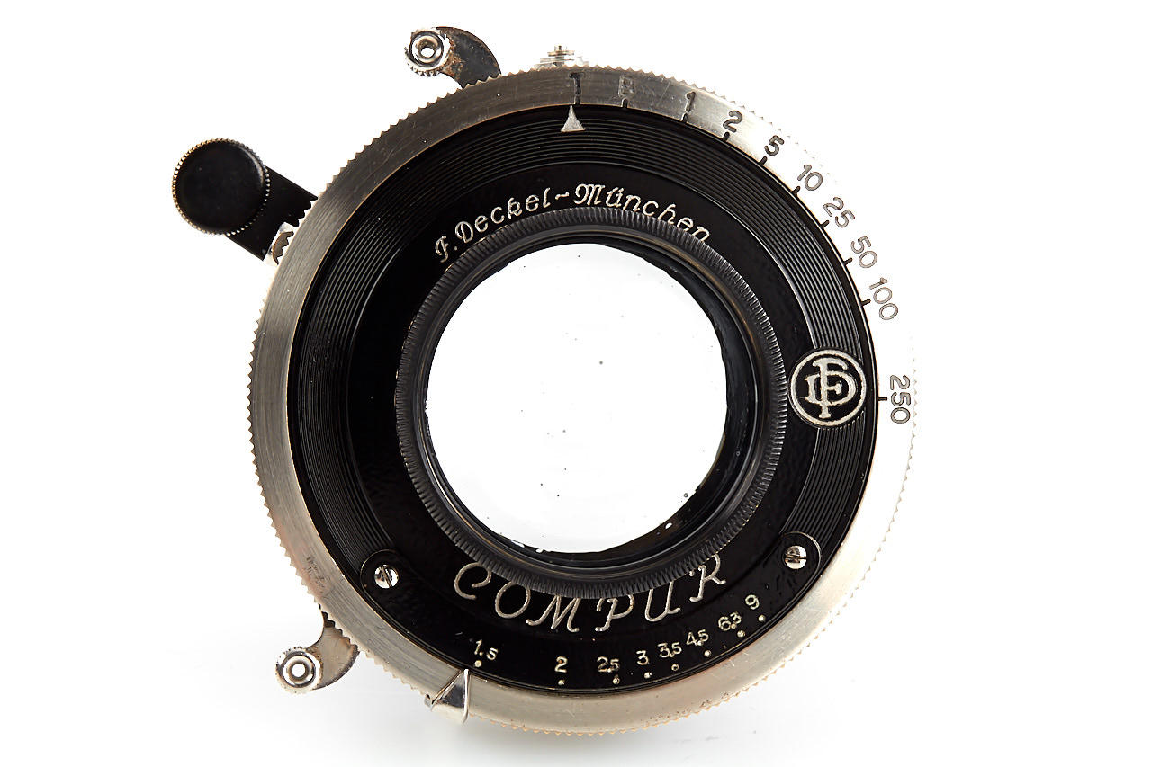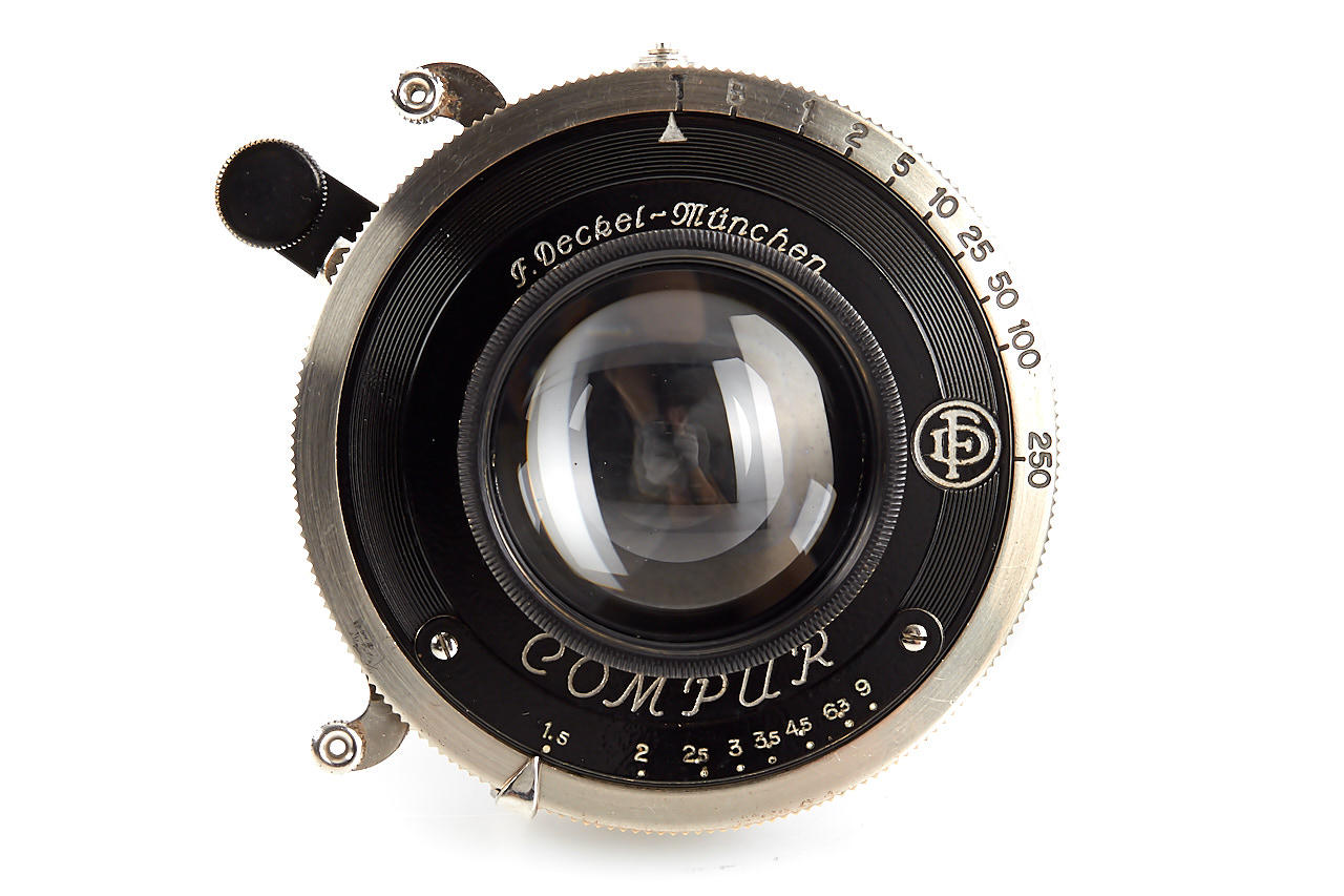 almost unknown fast lens with clean optics (no scratches or haze) with Deckel Compur shutter in focusing mount to 0.3m and 40mm screw mount, with screw-in hood, it covers half-frame 24x18mm - we have never seen such lens (the very rare Bopp camera had a 4cm Caleinar)