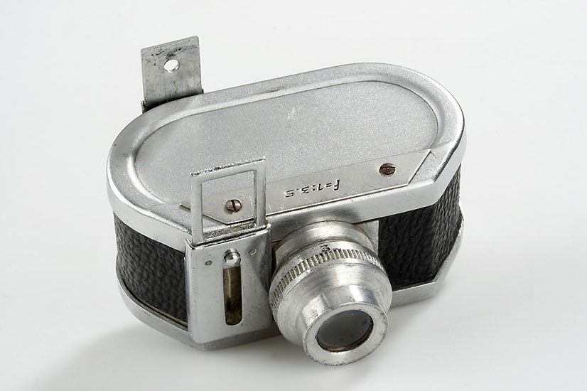 subminiature for 7x10mm exposures on 16mm film, green leather case, instructions and a photo, in maker's box