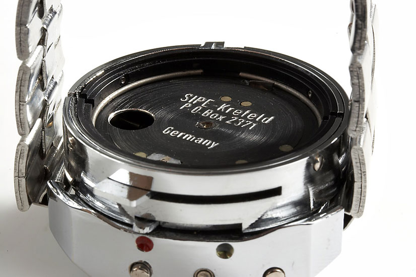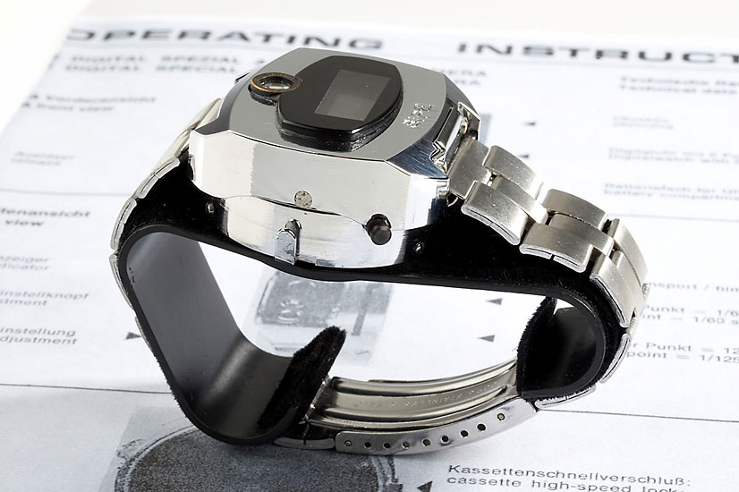 digital special wristwatch camera, Steinheil 2.5/12mm lens, for 7 exposures on special cassette, new in special box with instructions, a very rare and high quality spy camera