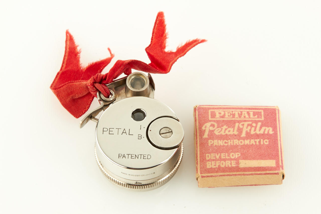 round model in near mint condition, with package of Petal Panchromatic film and wooden maker's box