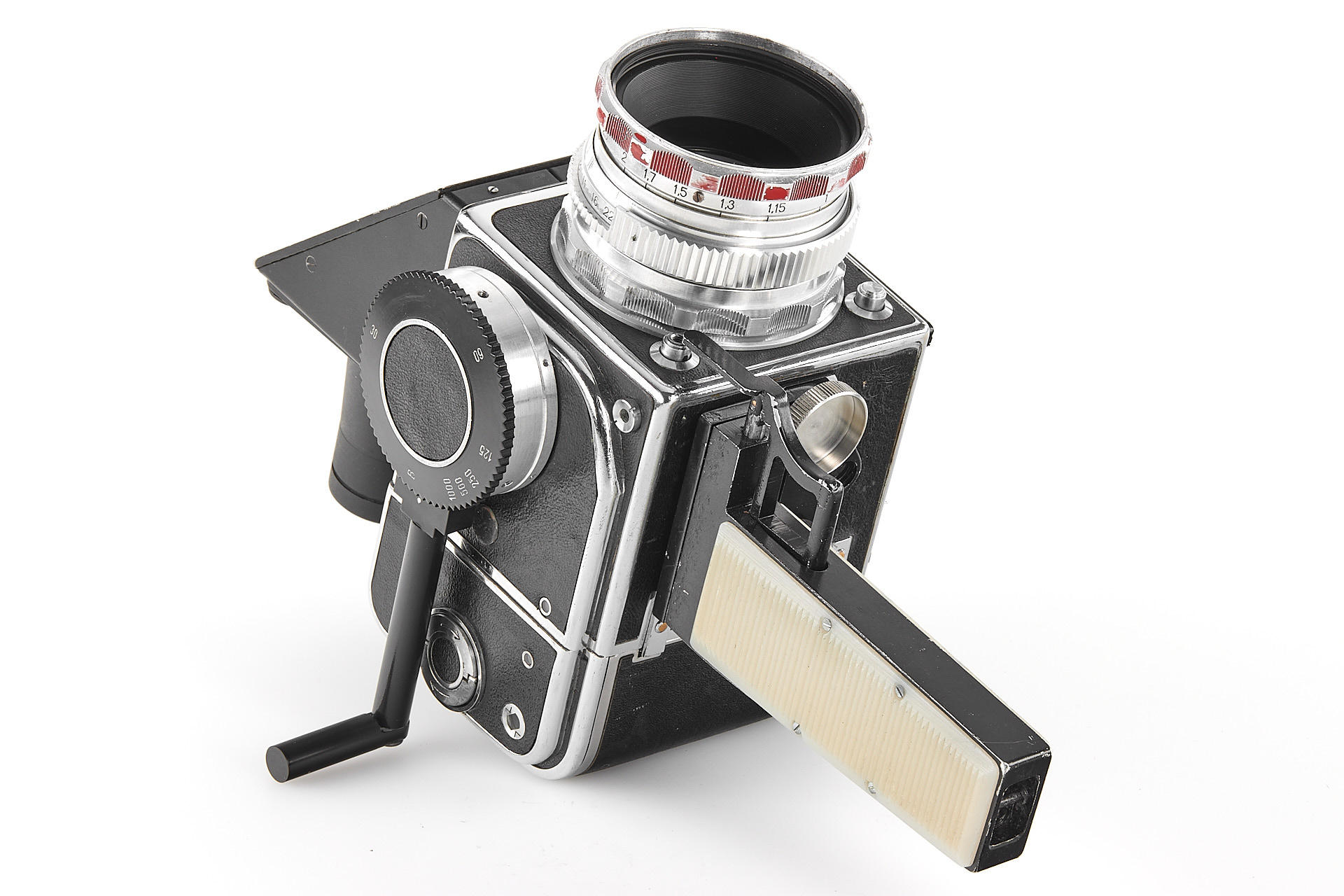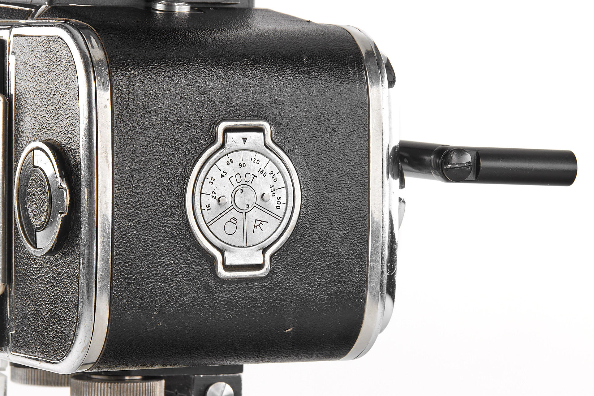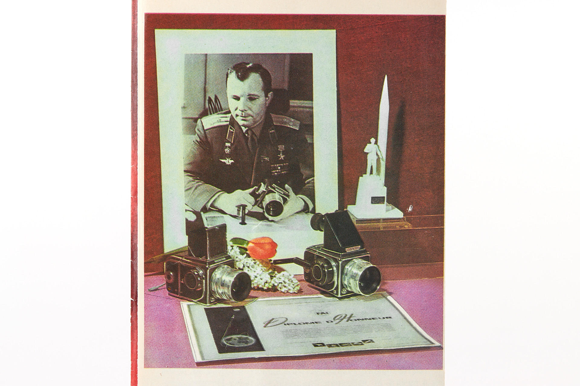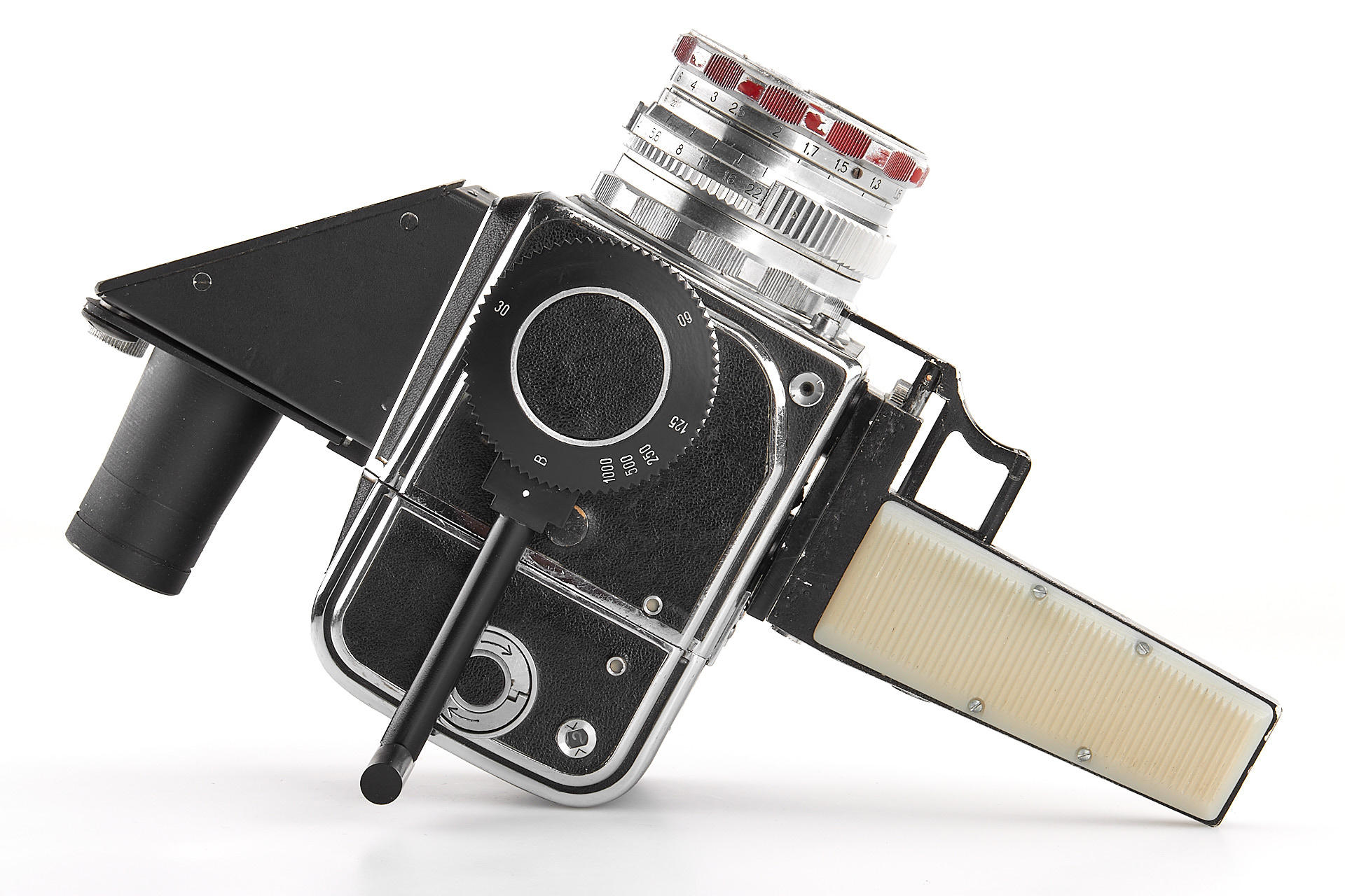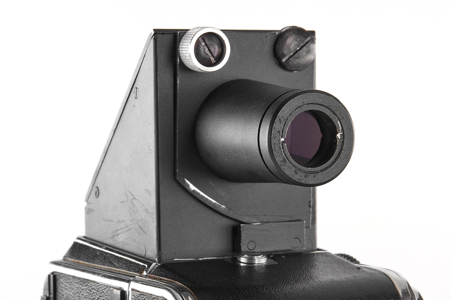 Salyut 1W was one of the first Soviet space cameras. It was designed for Soyuz 4 space mission launched on 14 January 1969. It was the first mission to carry out manual rendezvous and docking with Soyuz-5. There was no internal connecting corridor between the two craft, and so the crew had to step into space using handrails on the craft in order to carry out the transition. The commander of the mission was Vladimir Shatalov (1927-2021), who flew the Soyuz 4 by himself and after a successful docking brought the crew of Soyuz 5 – cosmonauts Aleksei Yeliseyev and Yevgeny Khrunov - safely back to Earth. For his part in this feat, he was made a Hero of the Soviet Union and awarded The Order of Lenin. The crew used a Salyut 1W camera to document the mission. The camera featured a special grip and viewfinder, as well as enlarged controls, enabling the operation of the camera in large spacesuit gloves. The offered example is in excellent, original condition and includes a modified Industar-29 2.8/80mm no.6700294, a special viewfinder, two film magazines and a matching grip. A similar camera is on permanent display in Yuri Gagarin Museum. It is one of the rarest Soviet cameras and an interesting piece from the history of space exploration.