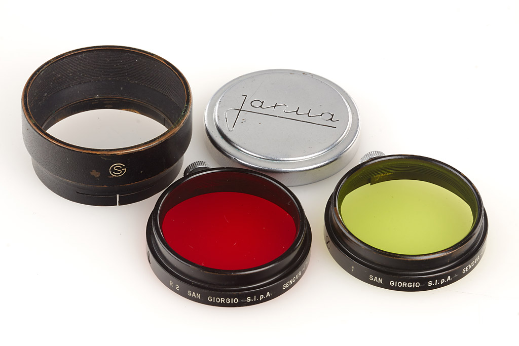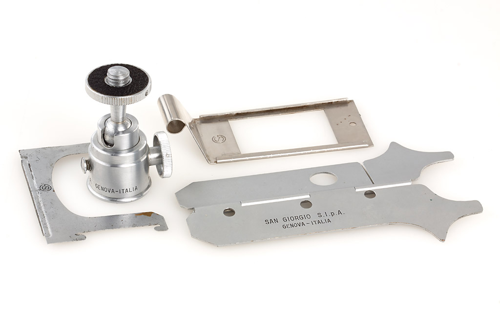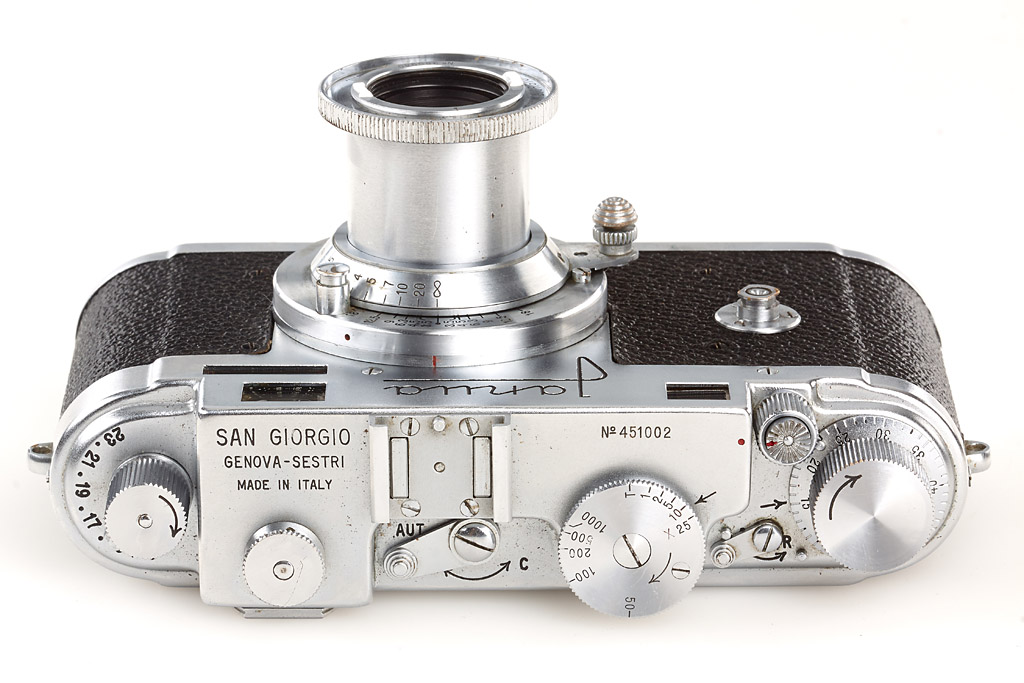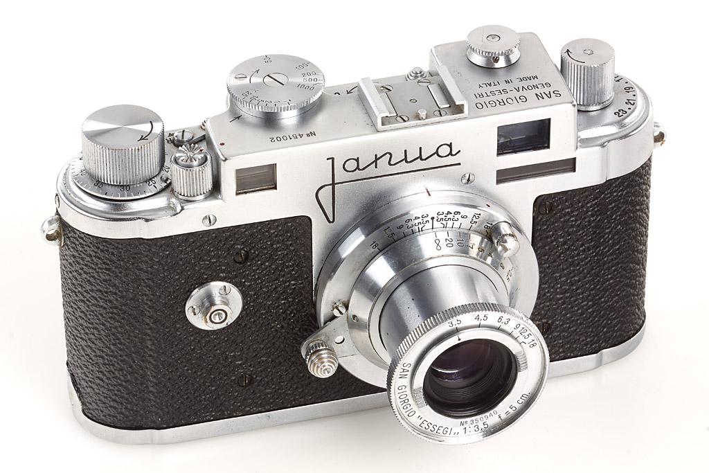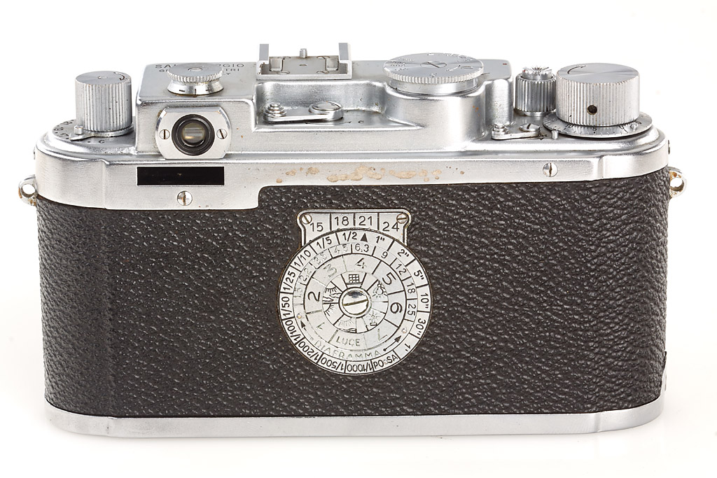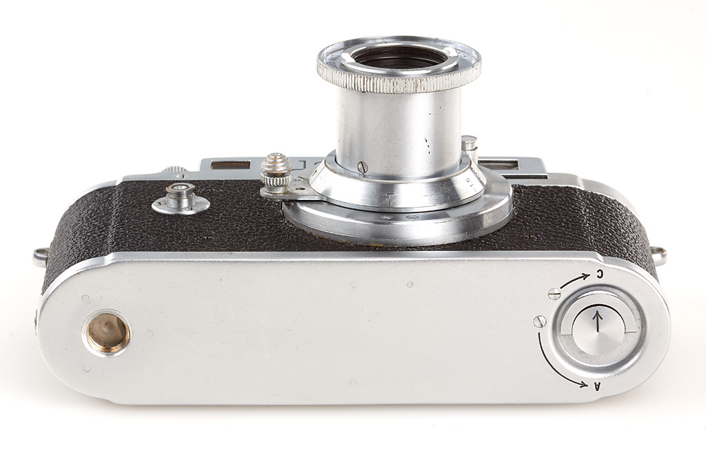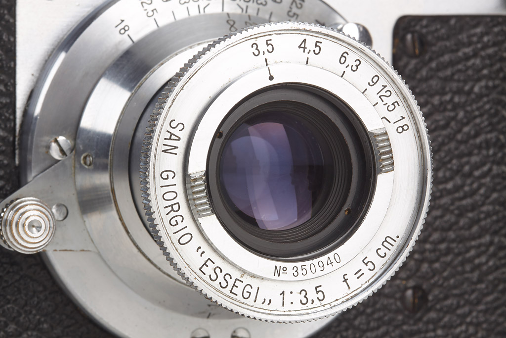 very rare Italian Leica copy in good condition, synchronised, with Essegi 3.5/5cm no.350940, with original cap, brown everready case, hood, original instruction book, tripod head, two filters, spool, film trimming template, two single film holder