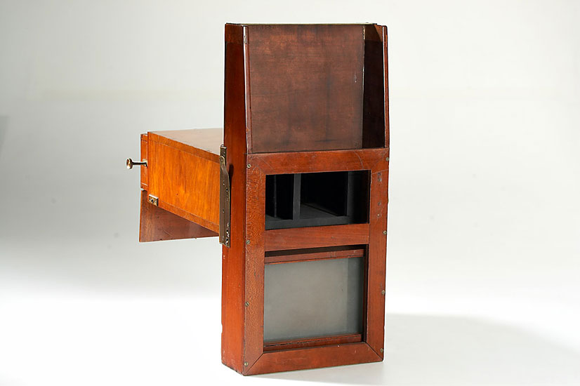 6x13cm single plate exposure, mahogany body, rack & pinion focusing, internal red, green & blue filter, a pair of prisms and lenses, plate back, only known example of this English 3-colour camera. Literature: Abring III p.248