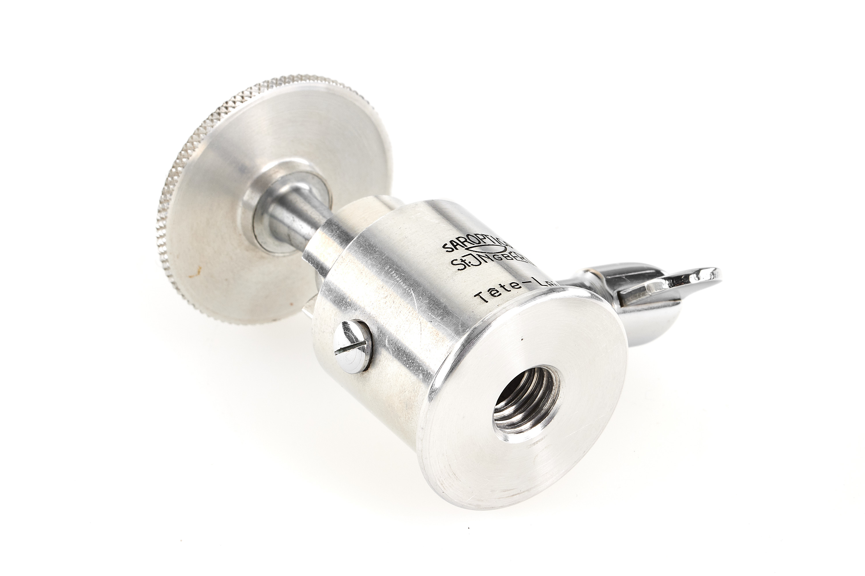 Very rare tripod head for the Monté en Sarre variants of Leica cameras, similar to FIAKU, engraved 'Tête-Leitz', in excellent condition.