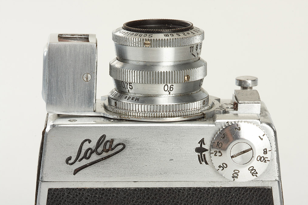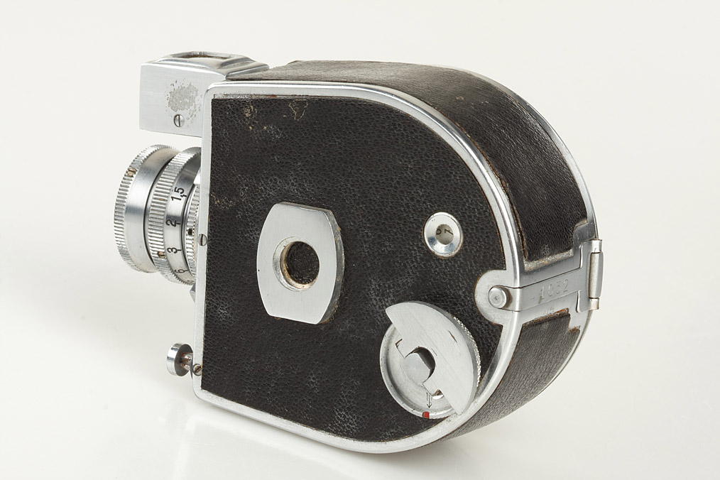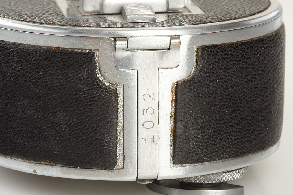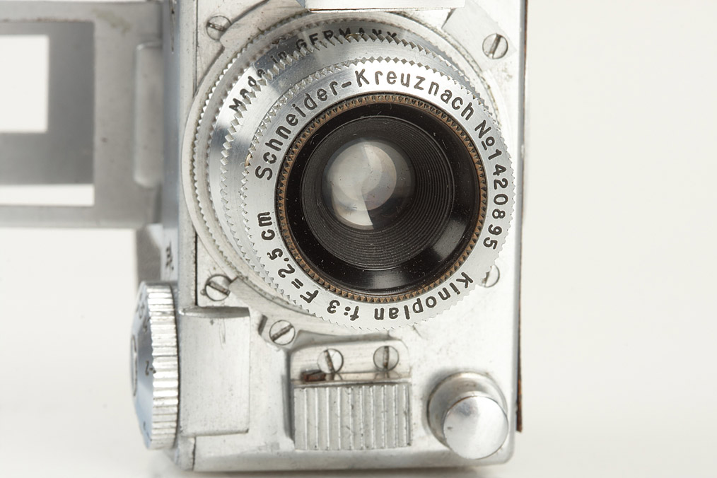 for exposures 13x18mm on un-perforated film, rare subminiature with clockwork motor, these cameras were used by the German secret service in WW2, very good condition with Kinoplan 3/2.5cm no.1420895, original leather case
