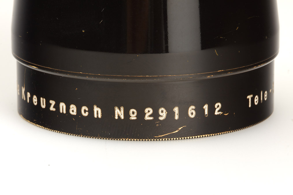 black painted brass Tele-Xenar with good lenses, iris diaphragm to 32, mounting ring